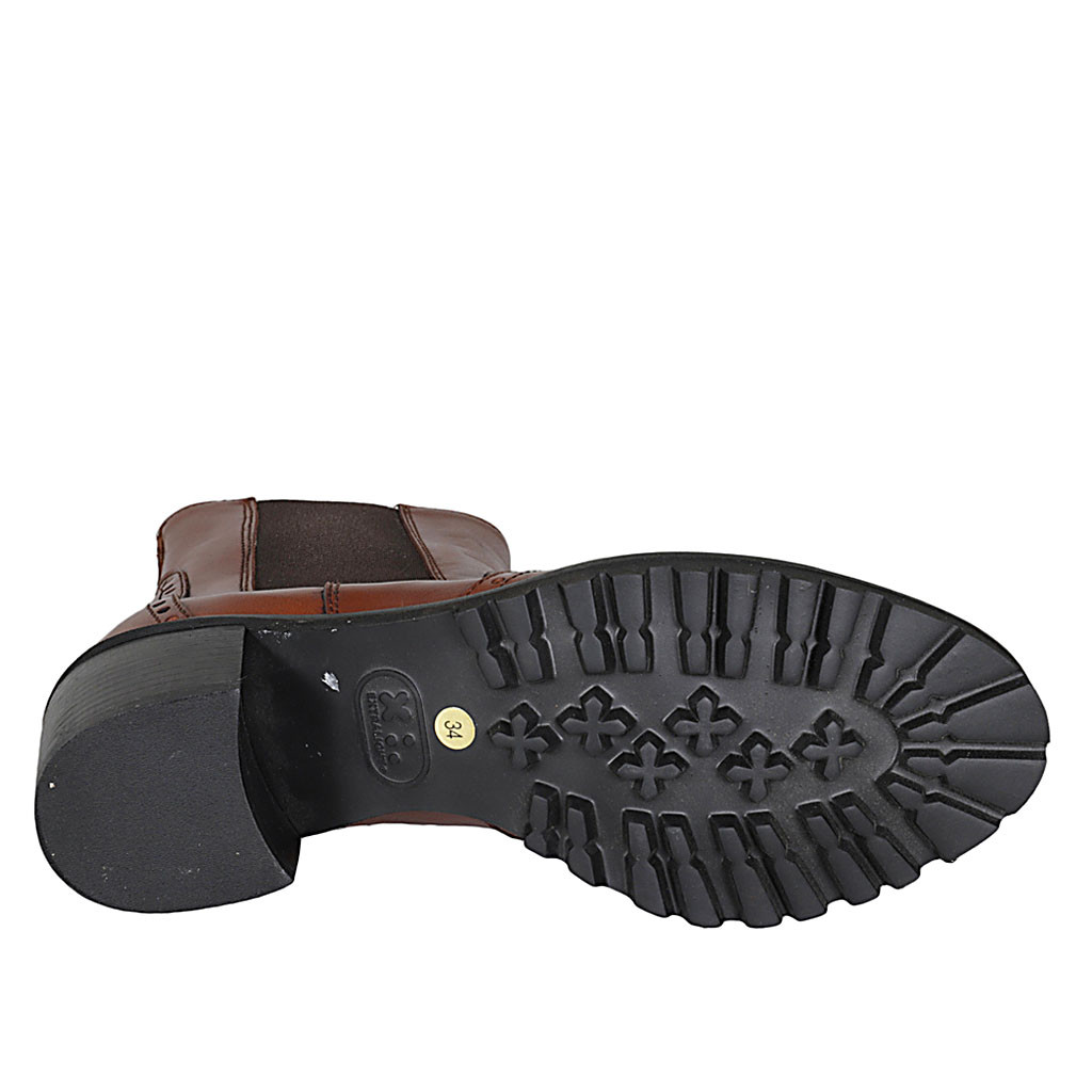 Damenstiefelette mit Gummibändern und Kappe aus cognacbraunem Leder Absatz 6