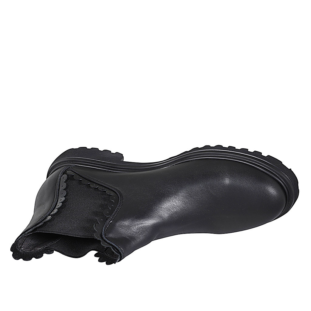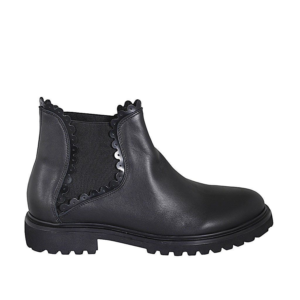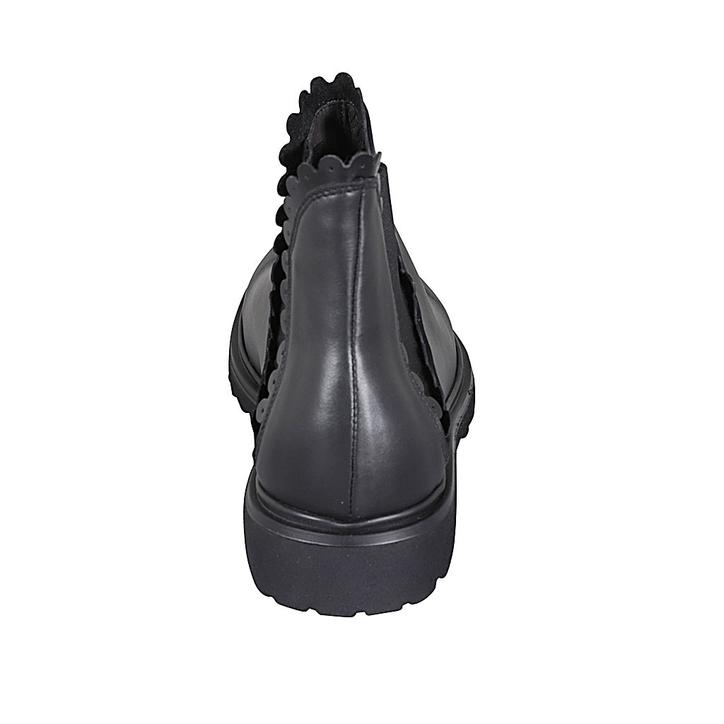 Damenstiefelette mit Gummibändern und dekoriertem Saum aus schwarzem Leder Absatz 3
