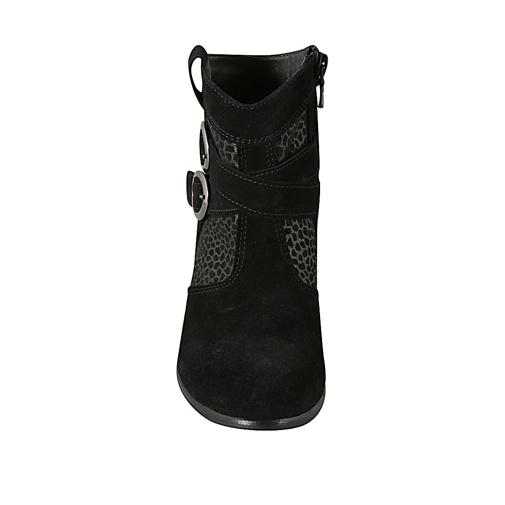 Damenstiefelette aus taupefarbenem Wildleder mit Reißverschluss und Gummiband Absatz 7