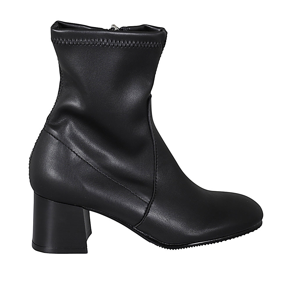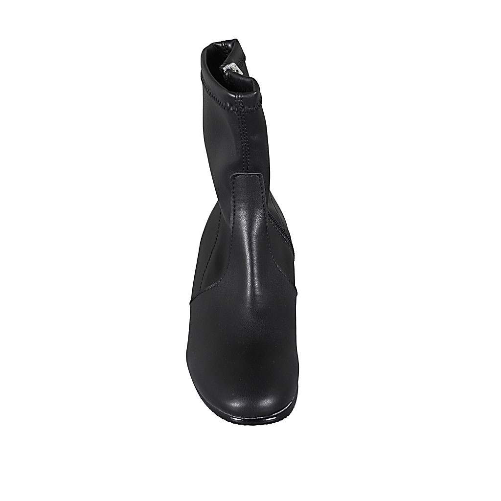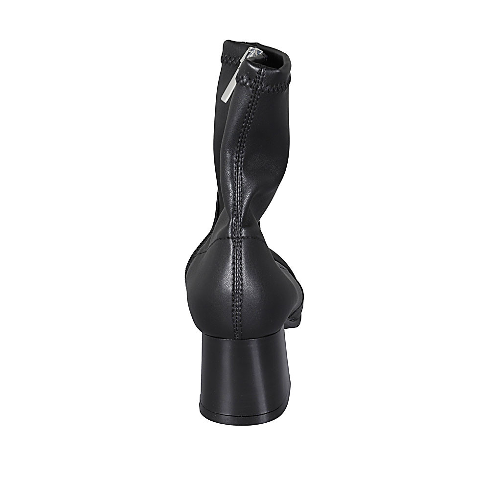 Damenstiefelette aus schwarzem elastischem Material und Leder mit Reißverschluss Absatz 6