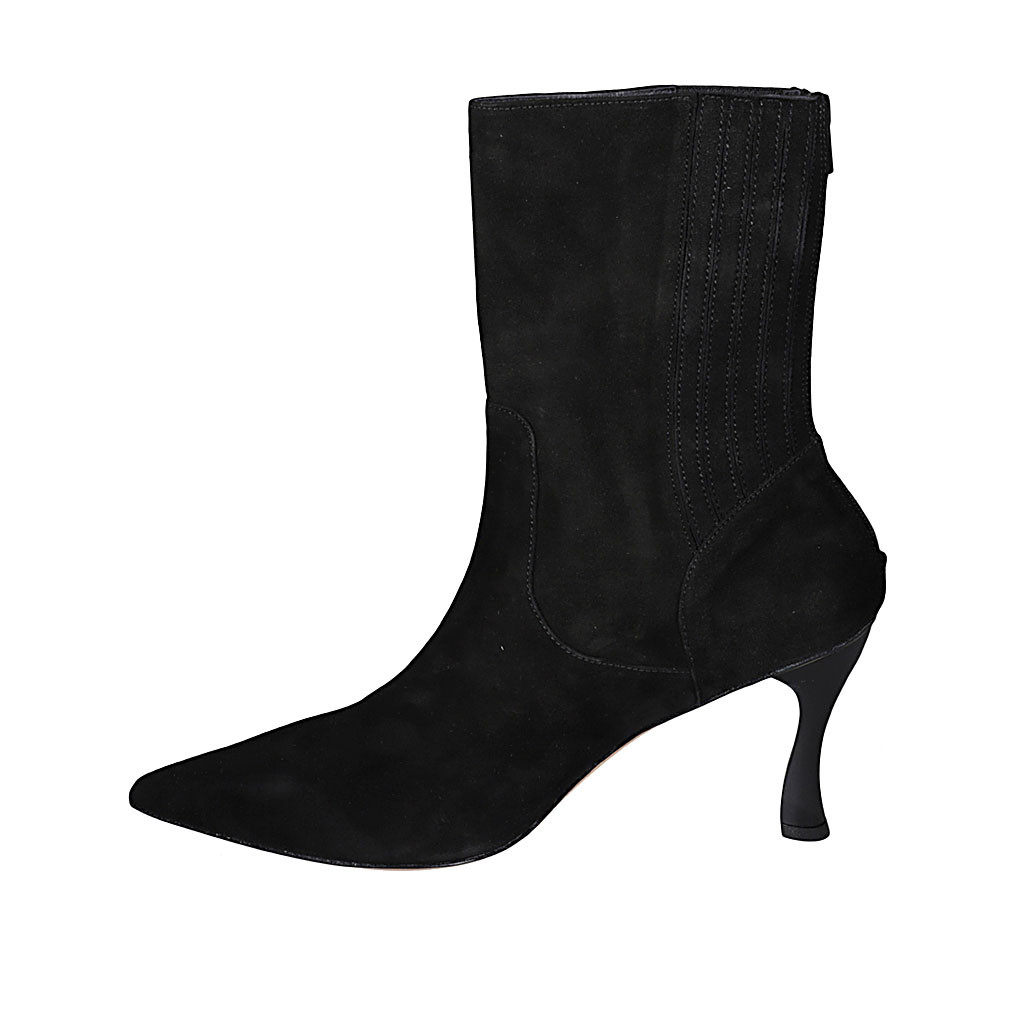 Damenstiefelette mit Reißverschluss und Gummibänder aus schwarzem Wildleder Absatz 9