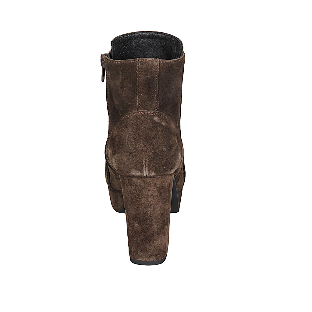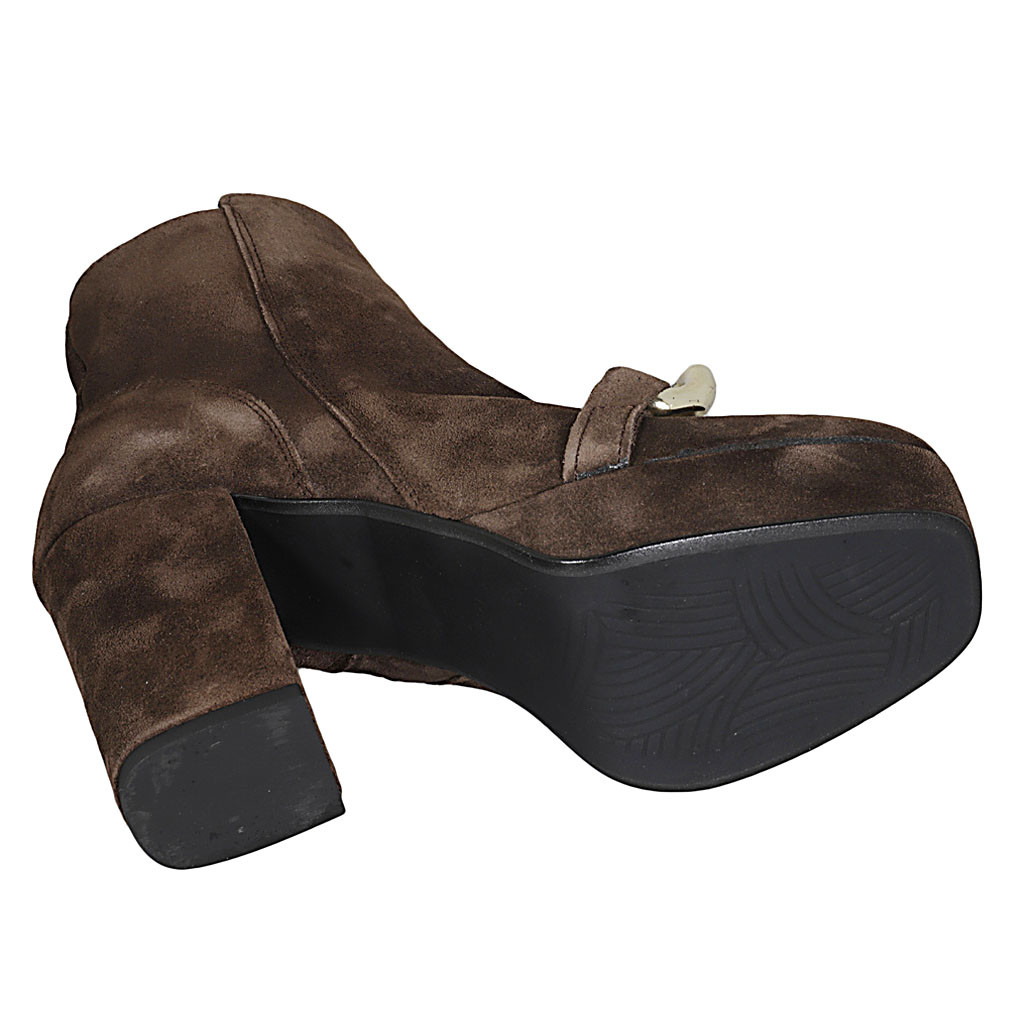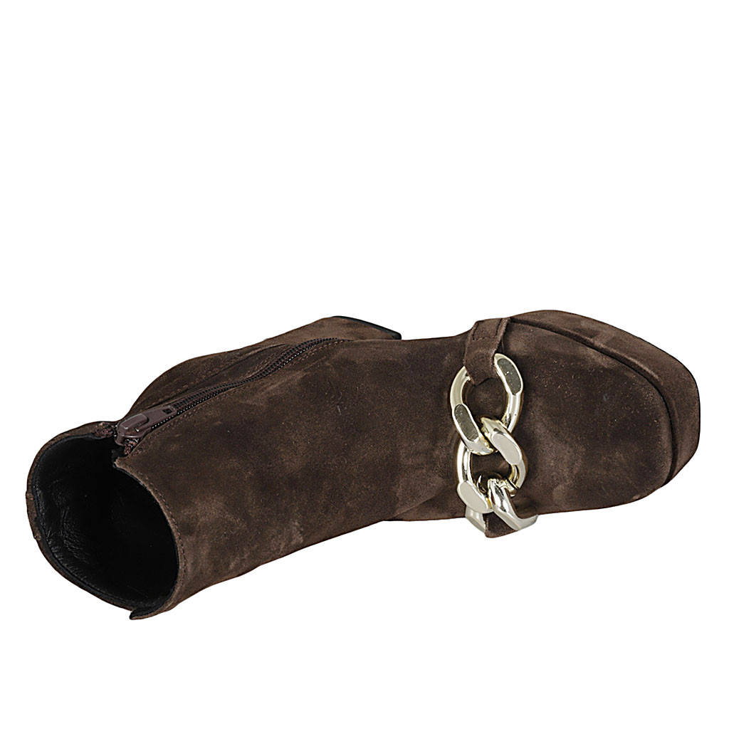 Damenstiefelette mit Reißverschluss, Plateau und Kette aus braunem Wildleder Absatz 9