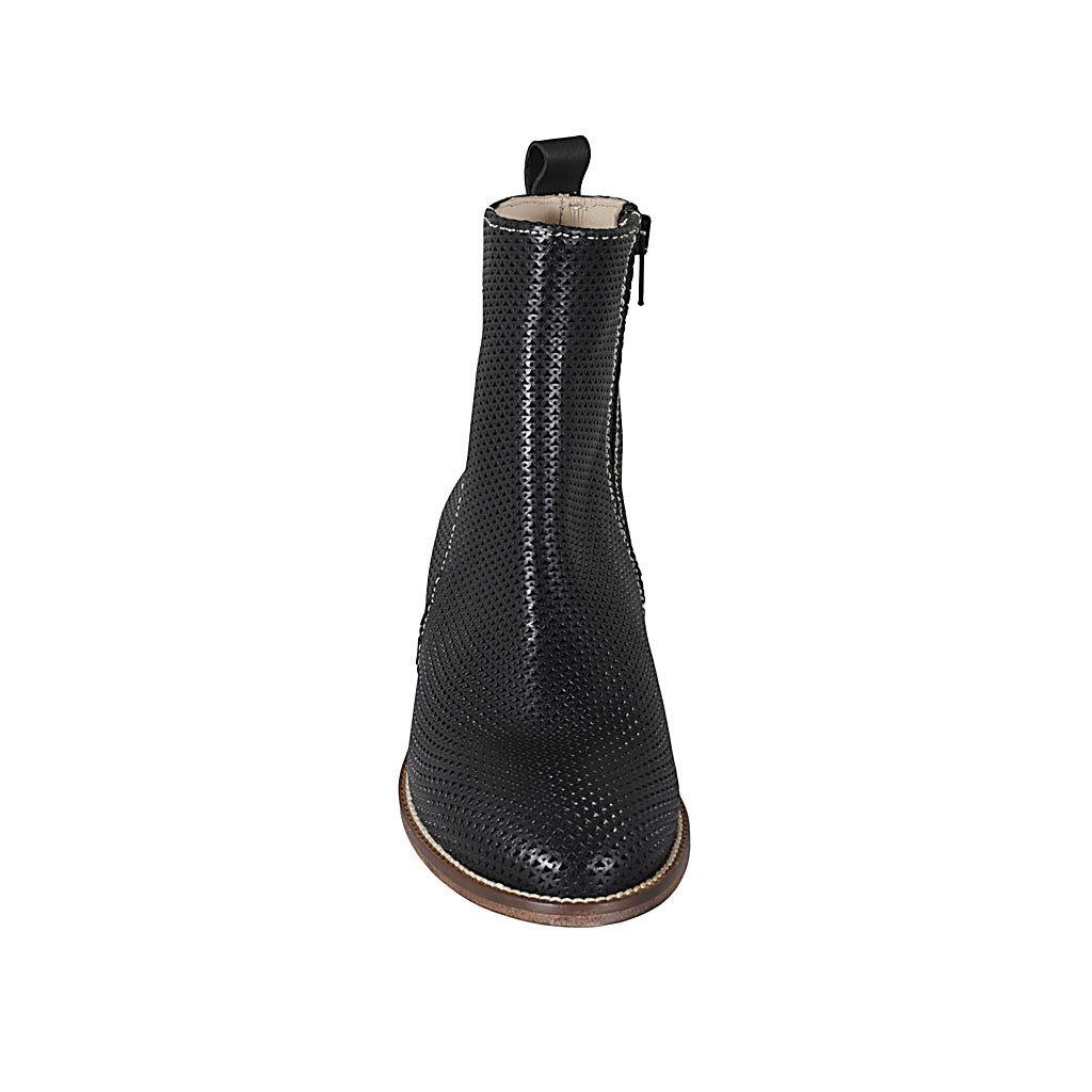 Damenderbyschuh mit Schnürsenkeln aus schwarzem bedrucktem Leder Absatz 3