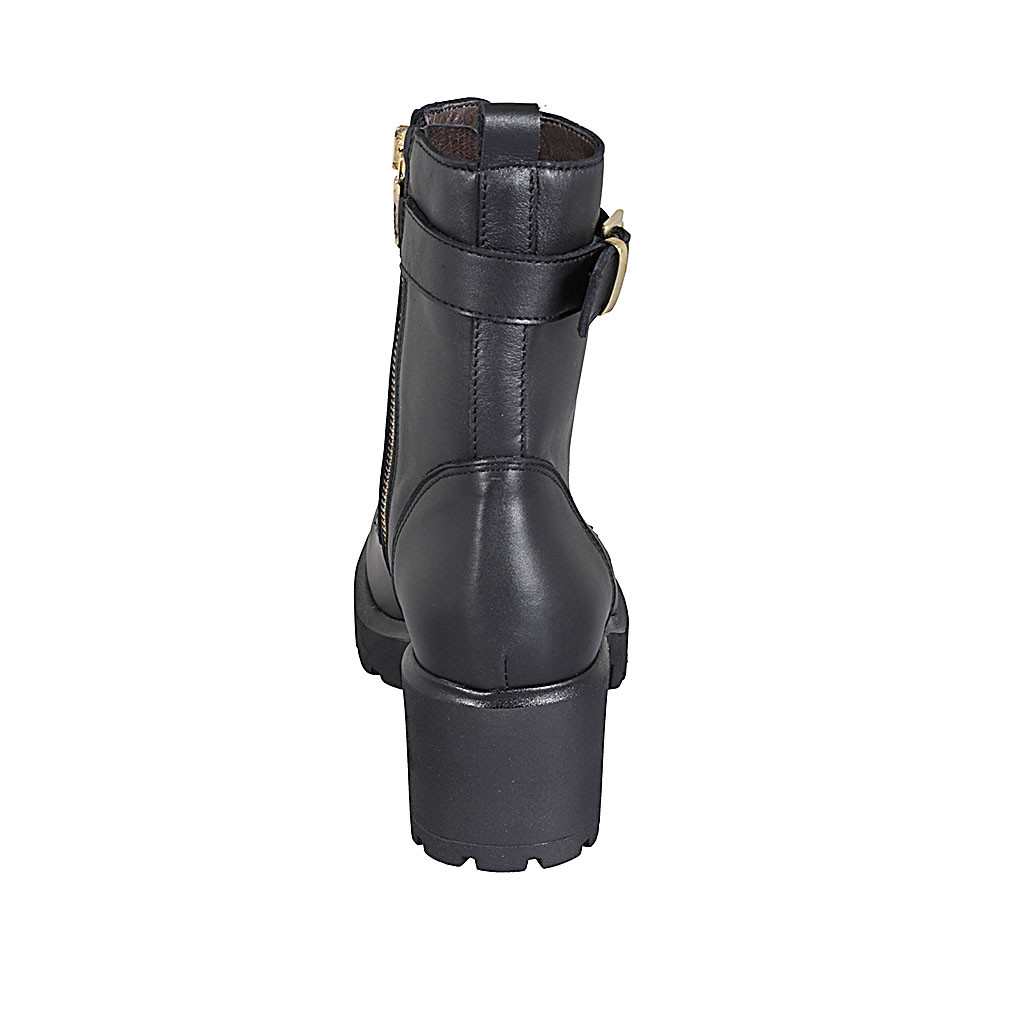 Damenstiefel mit Schnüren, Reißverschluss und Schnallen aus schwarzem Leder Absatz 3