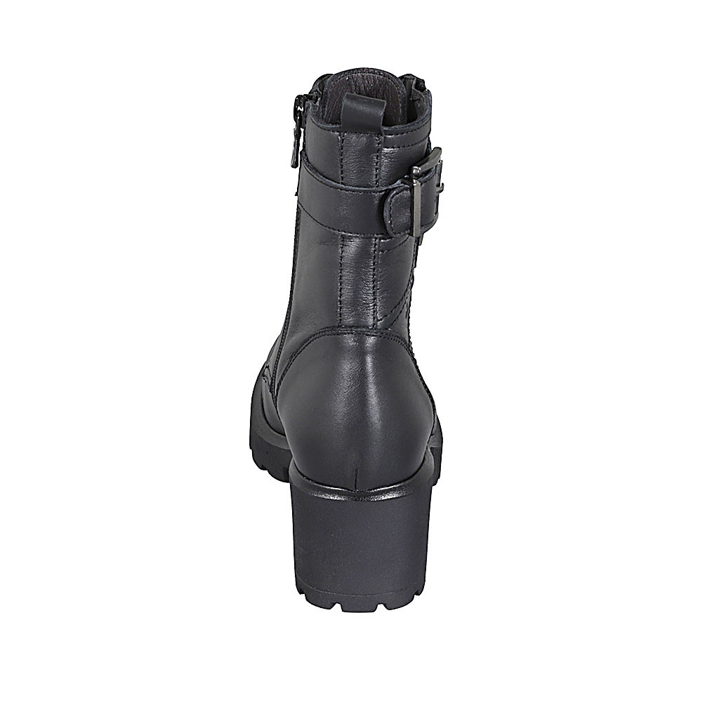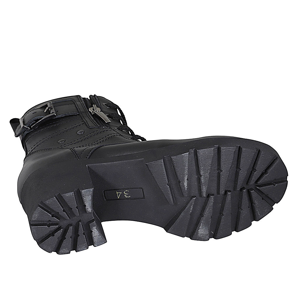 Damenstiefelette mit Schnürsenkeln, Nieten, Schnallen und Reißverschlüssen aus schwarzem Leder Absatz 6
