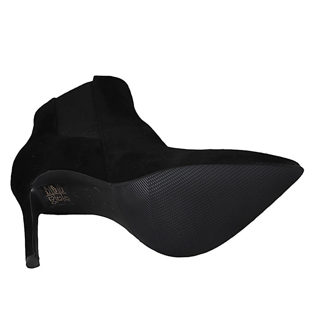 Spitze Damenstiefelette mit Gummibändern aus schwarzem Wildleder Absatz 10