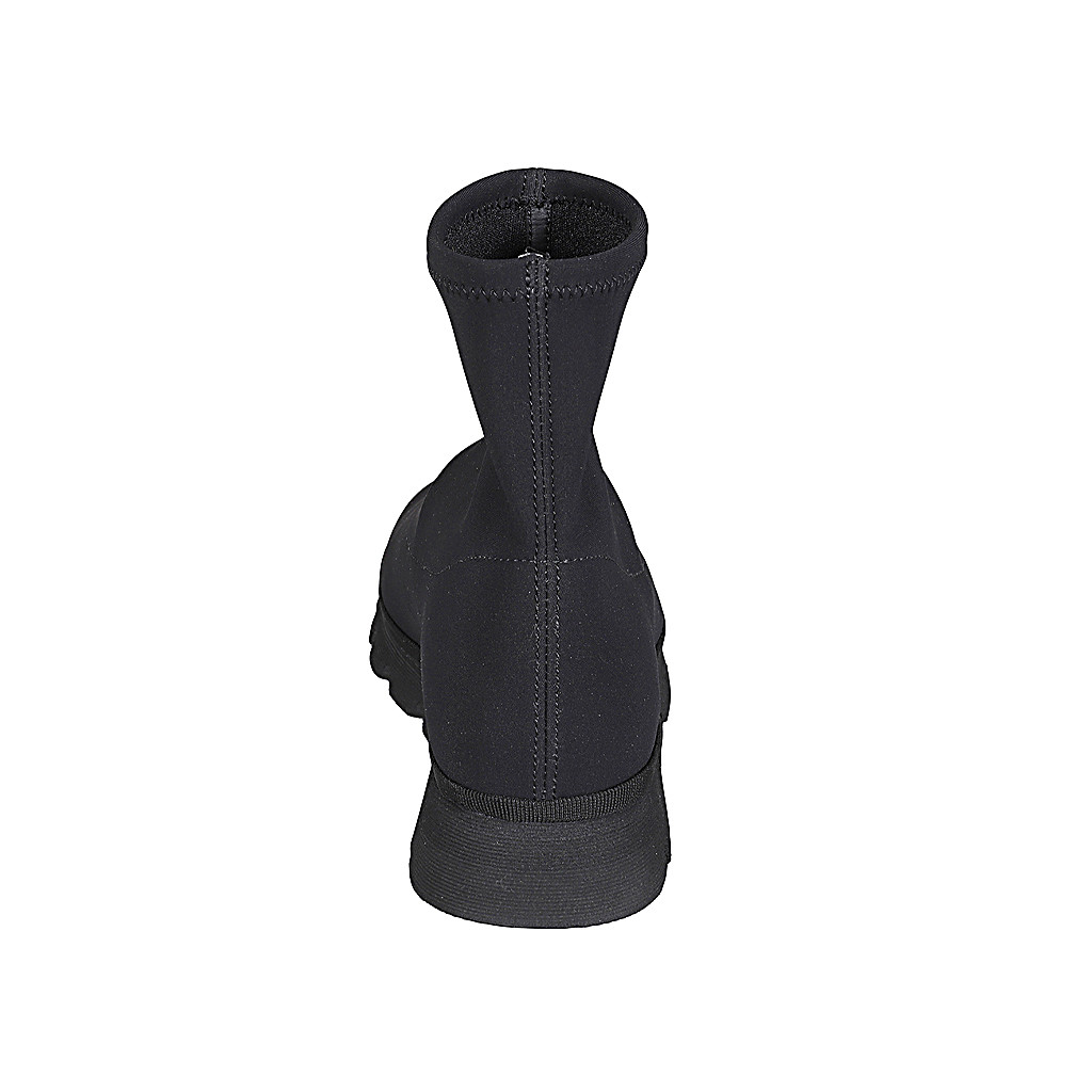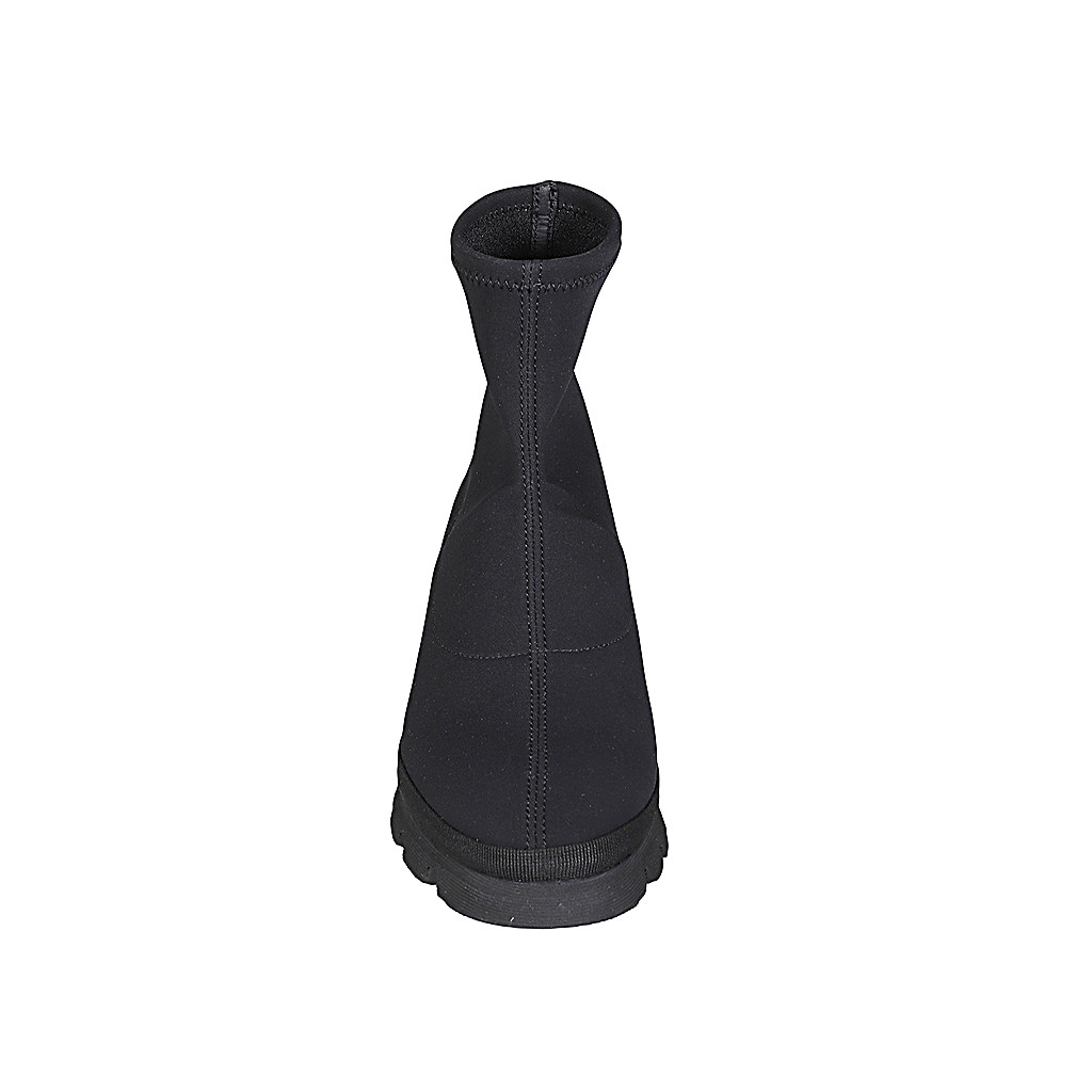 Damenstiefelette aus schwarzem elastischem Stoff Keilabsatz 3
