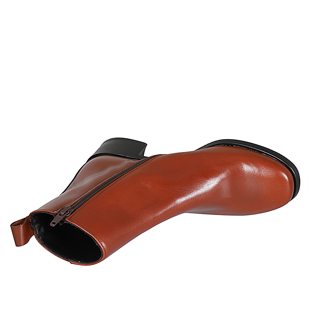 Damenstiefelette mit Reißverschluss und quadratischer Spitze aus cognacbraunem Leder Absatz 4
