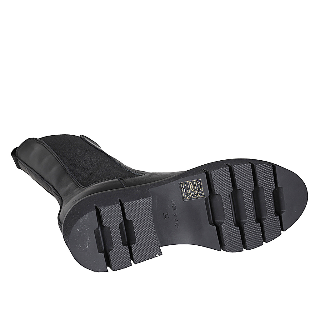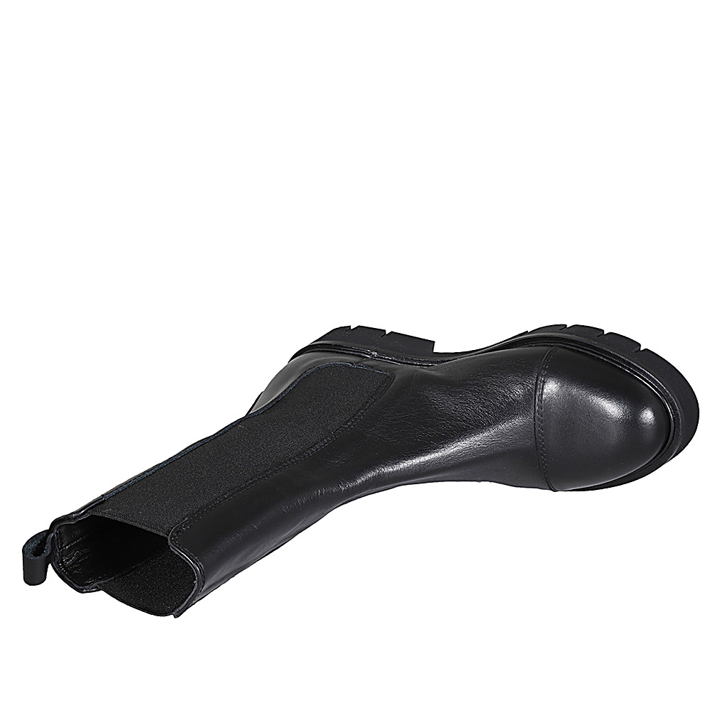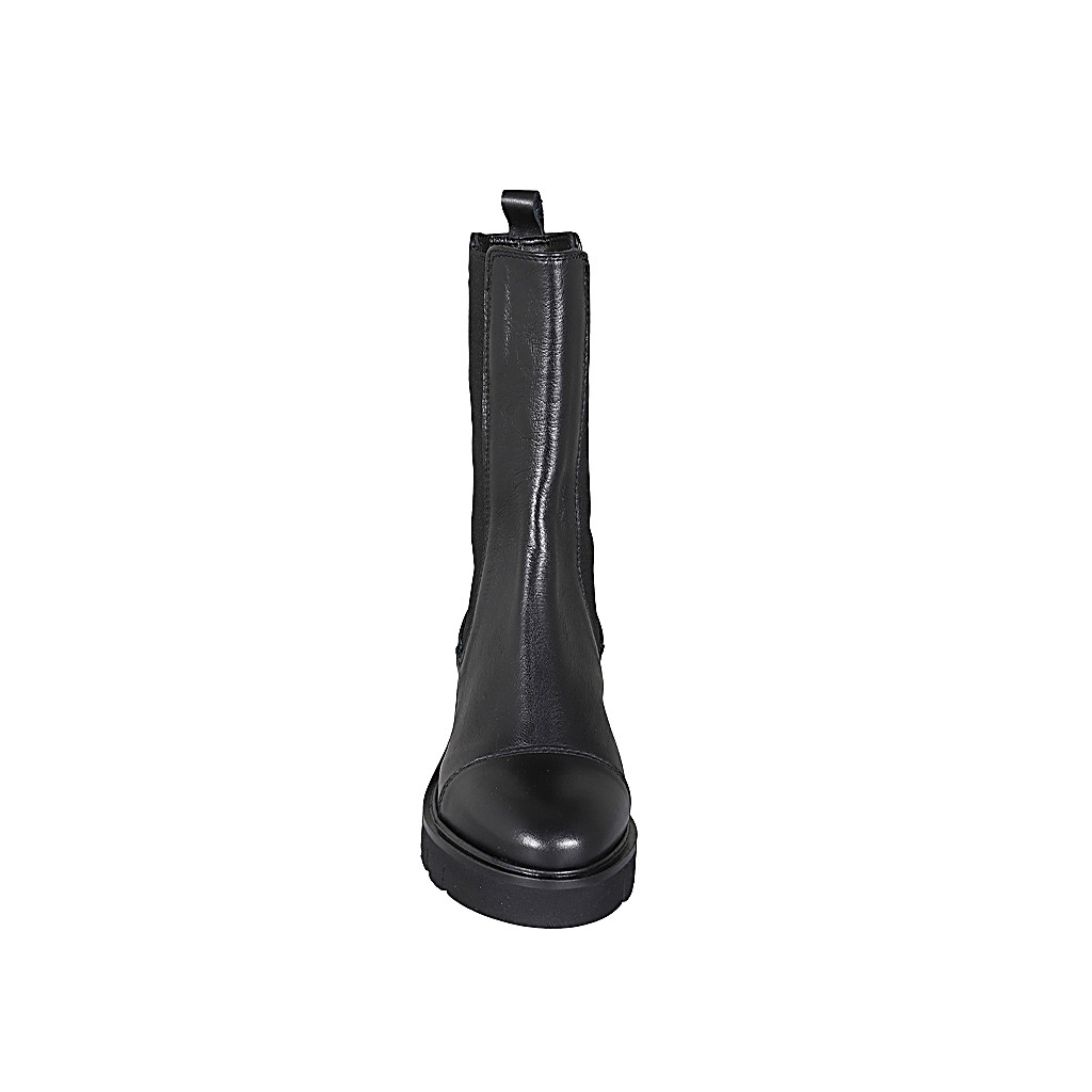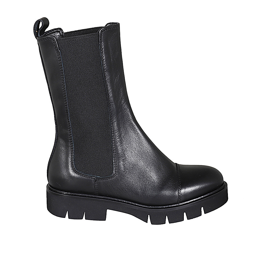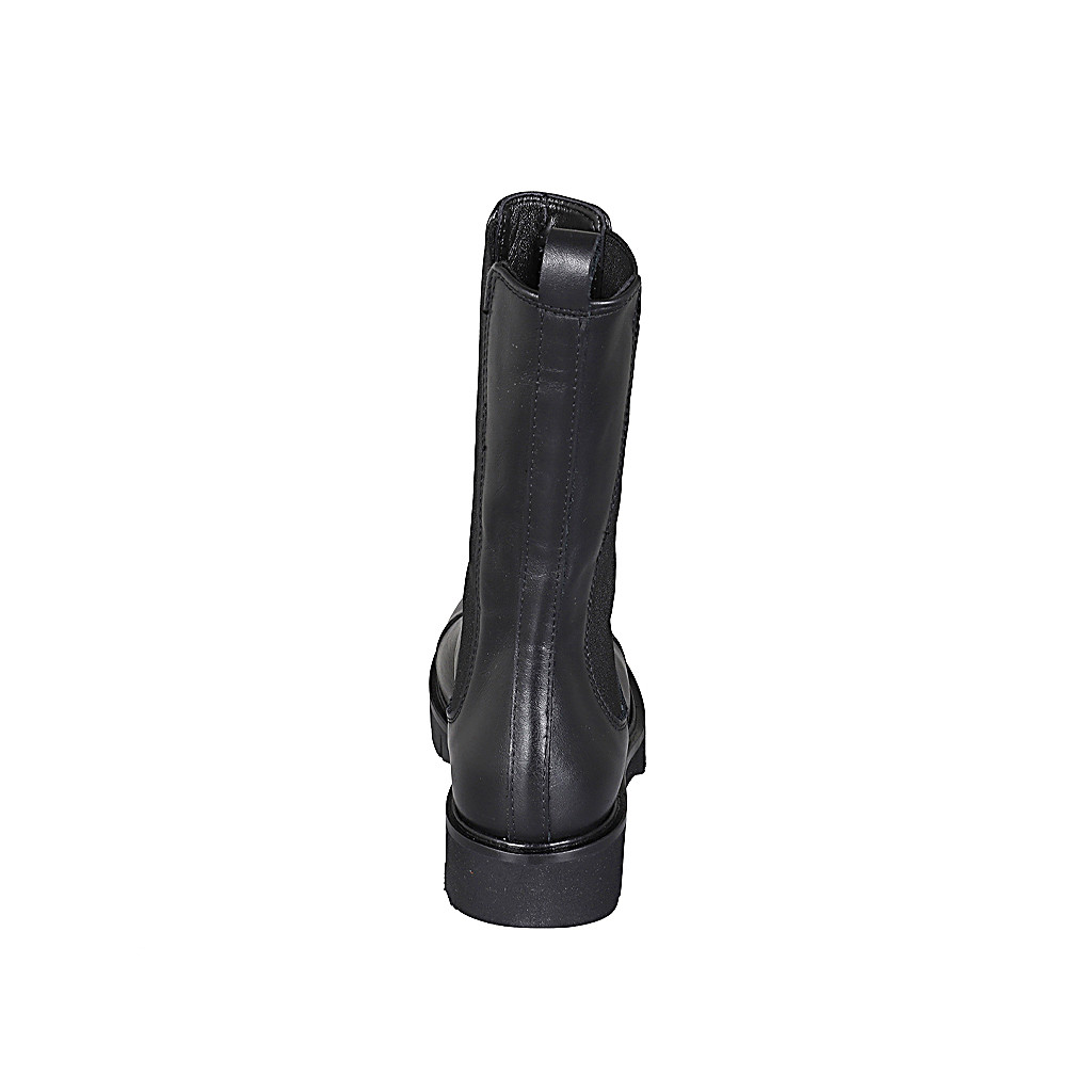 Hohe Damenstiefelette mit Gummibändern und Kappe aus schwarzem Leder Absatz 3