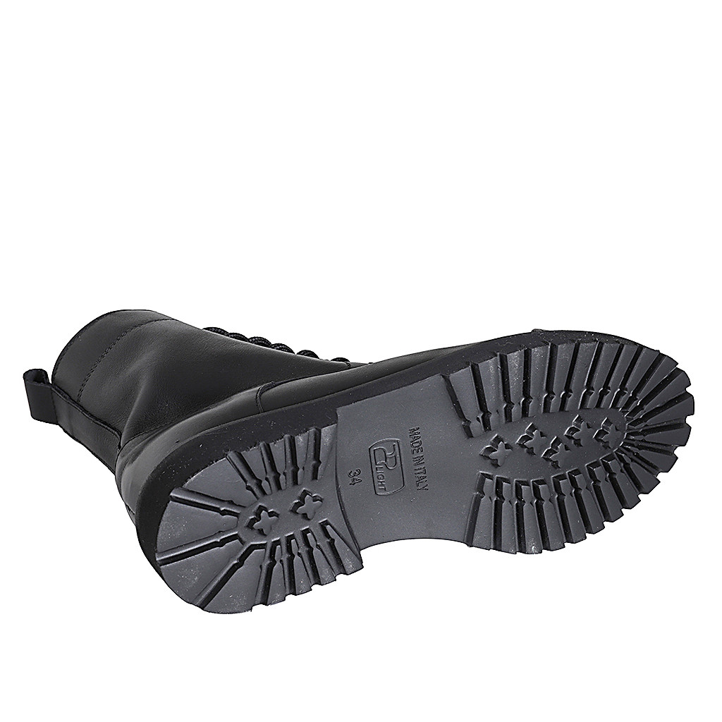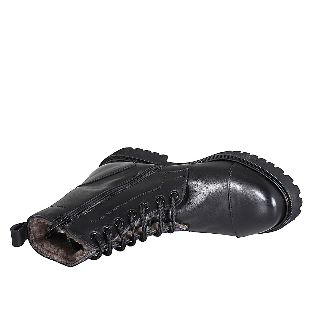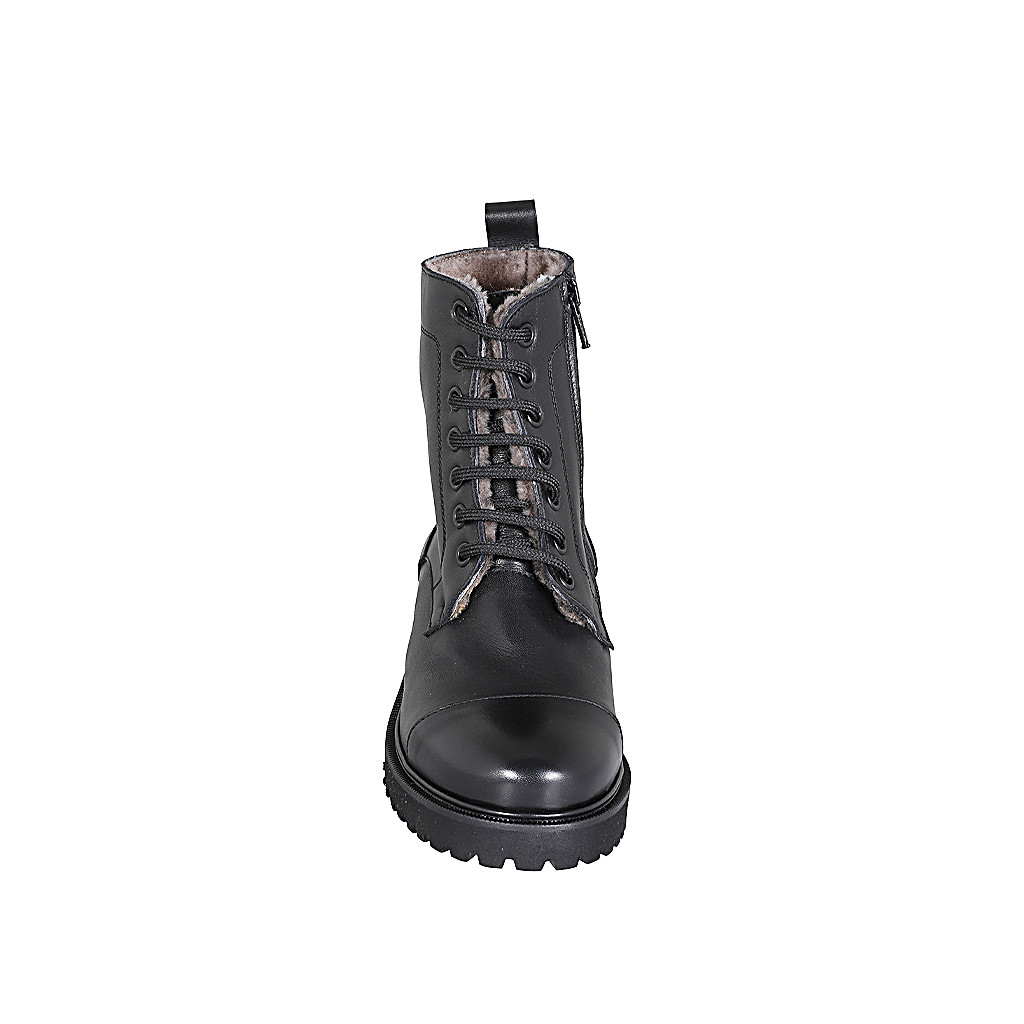 Damenstiefelette mit Schnürsenkeln, Kappe und Reißverschluss aus schwarzem Leder Absatz 3