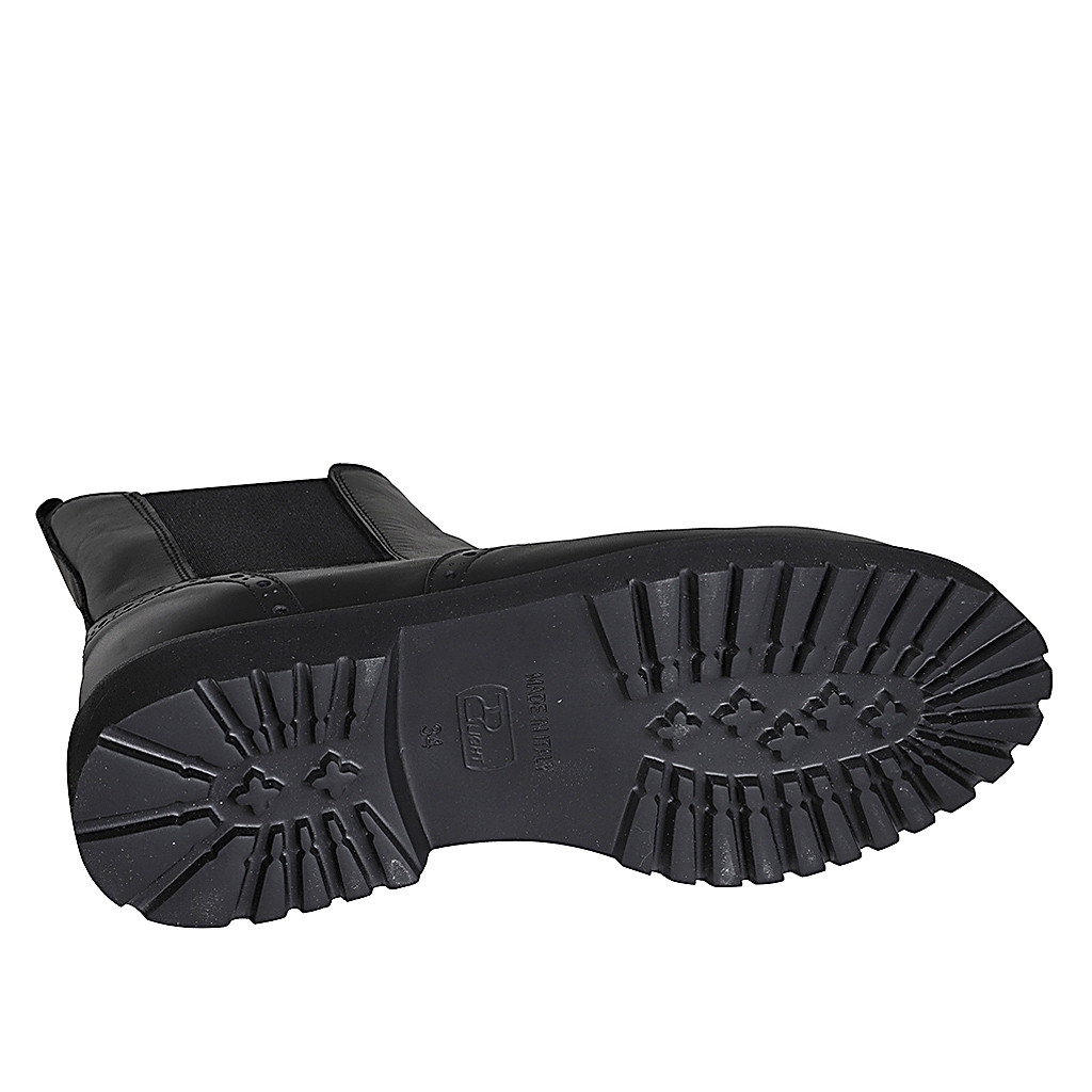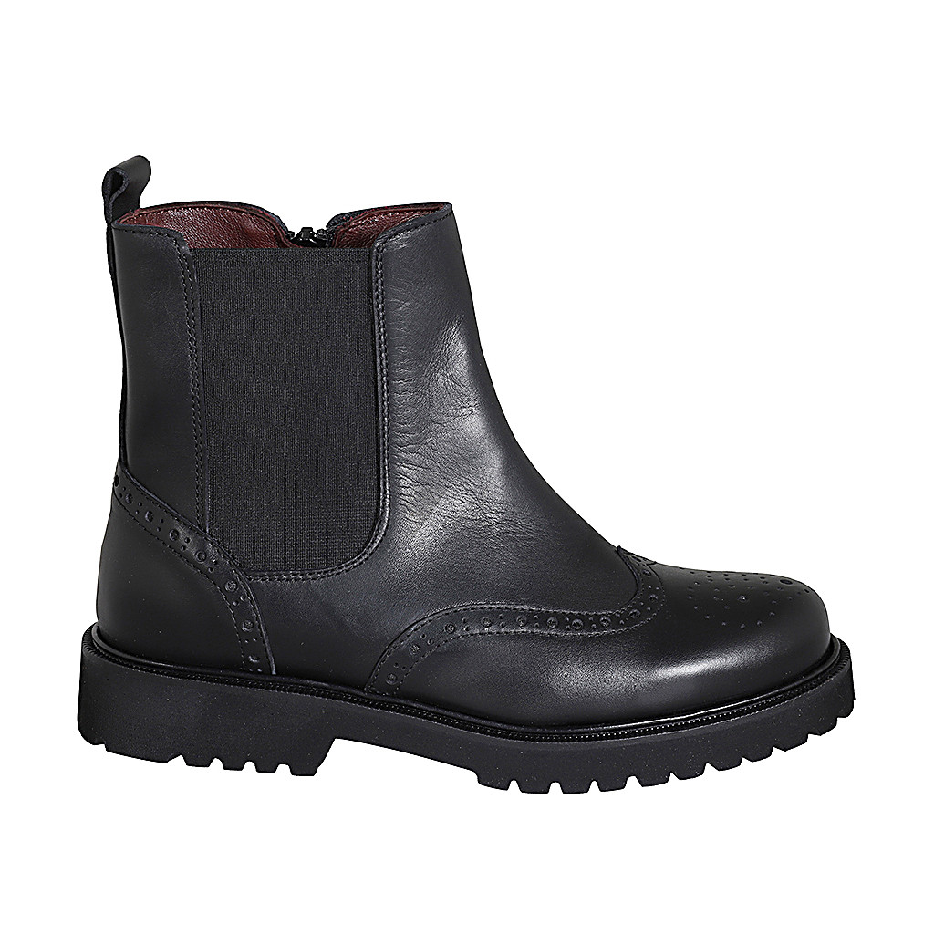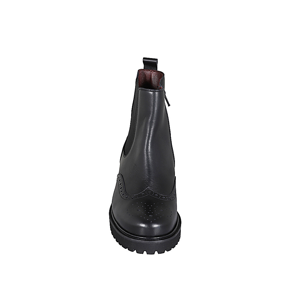 Damenstiefelette mit Gummiband, Broguemuster und Reißverschluss aus schwarzem Leder Absatz 3