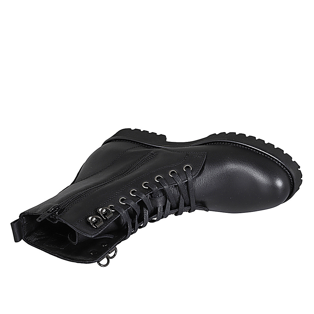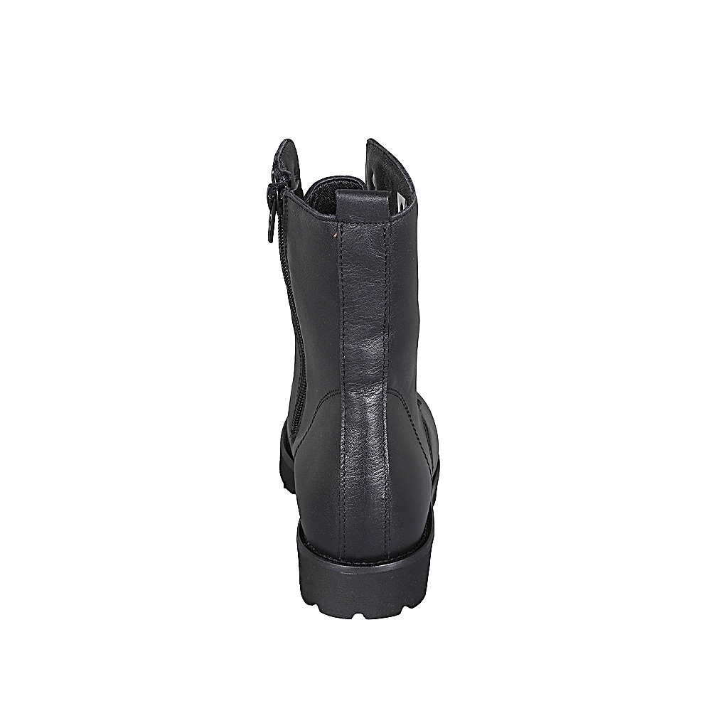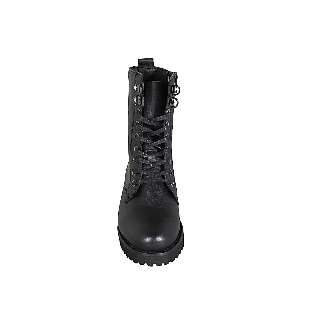 Damenstiefelette aus schwarzem Leder mit Schnürsenkeln und Reißverschluss Absatz 3