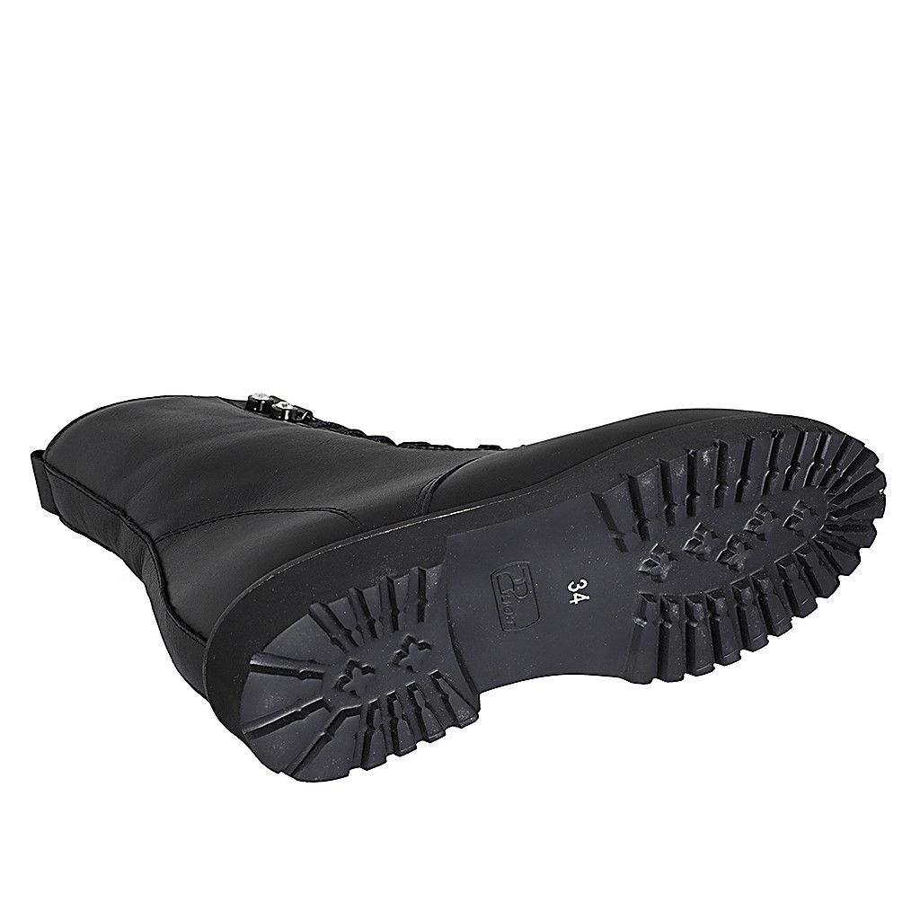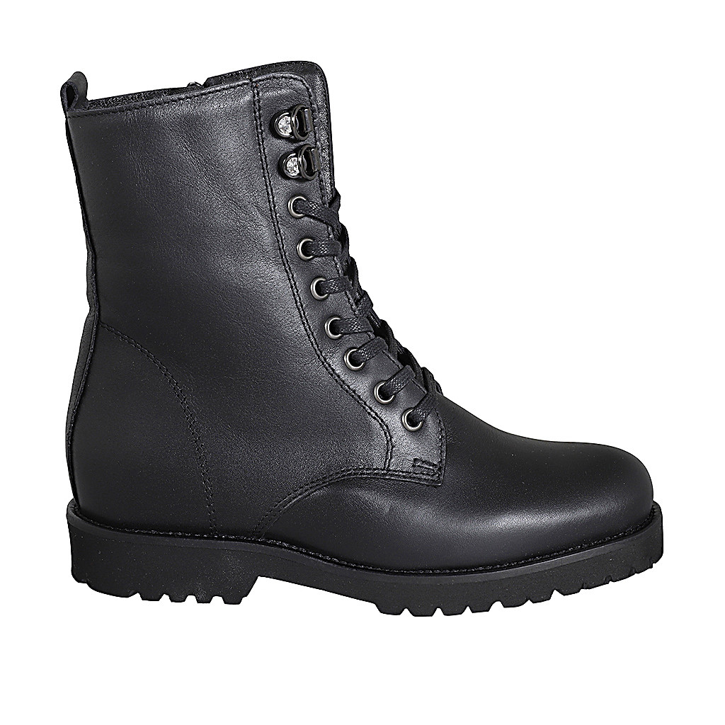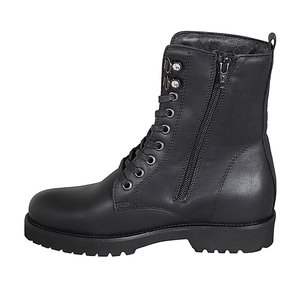 Damenstiefelette aus schwarzem Leder mit Schnürsenkeln und Reißverschluss Absatz 3