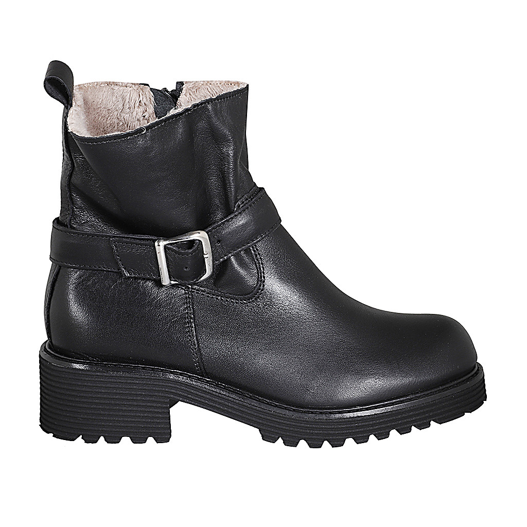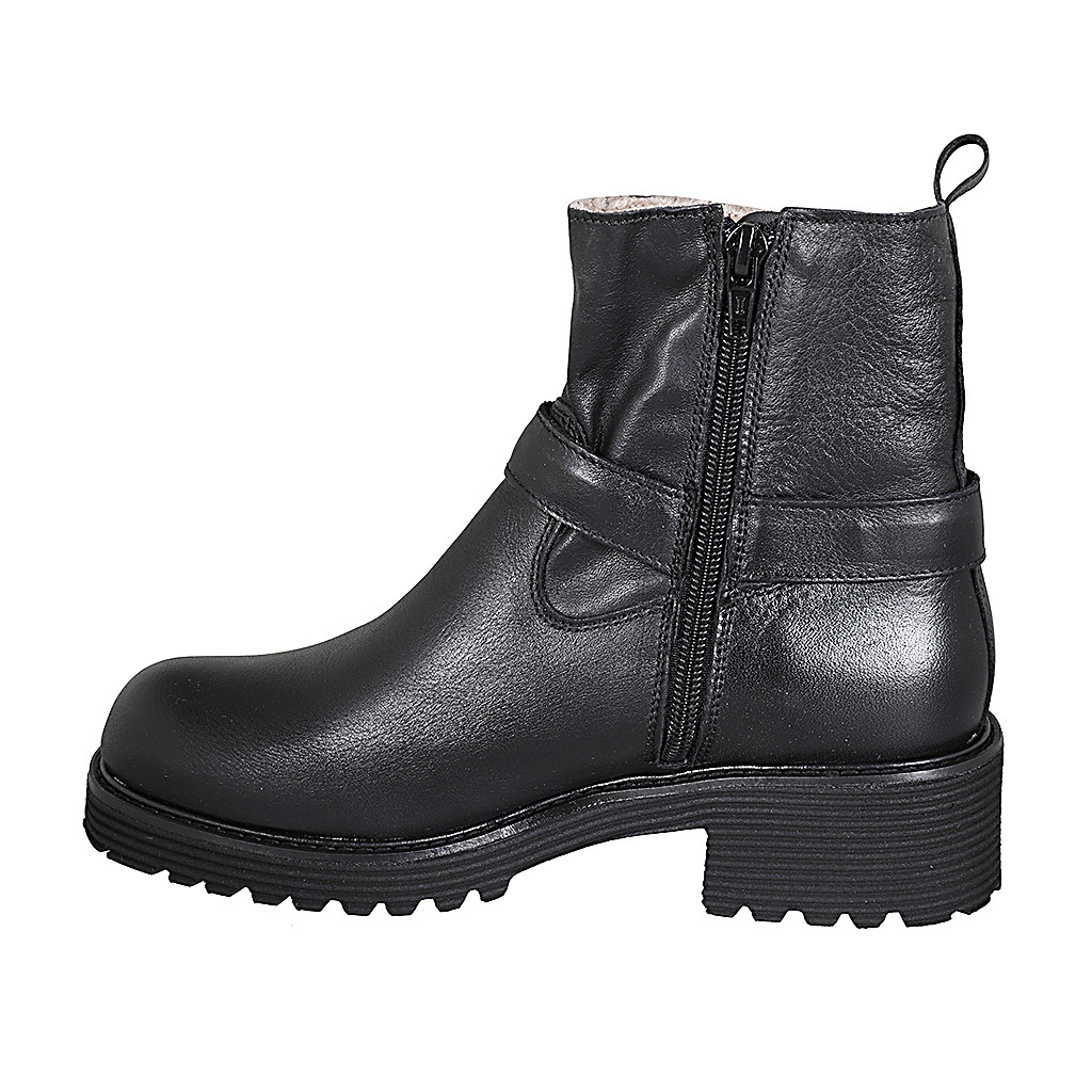 Damenstiefelette aus schwarzem Leder mit Reißverschluss und Schnalle Absatz 5