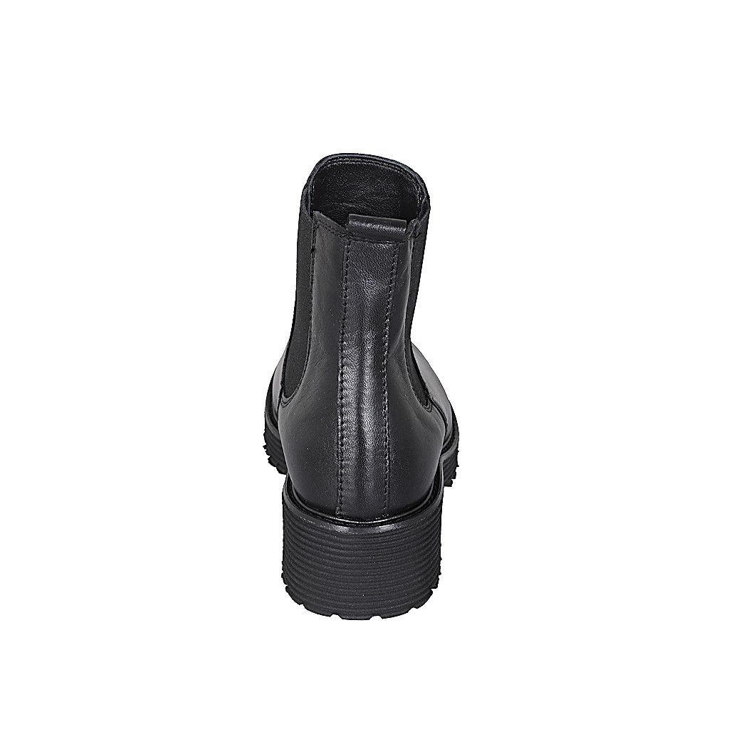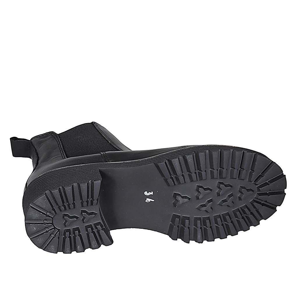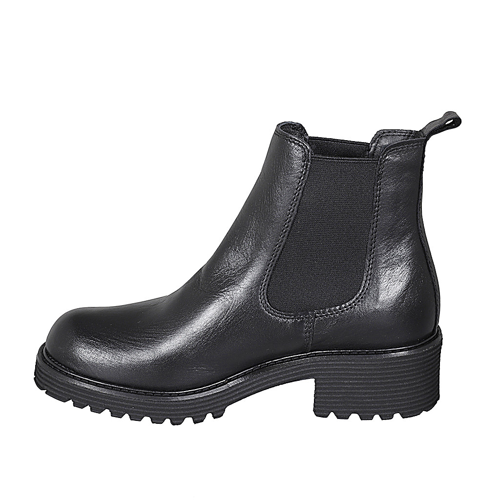 Runde Damenstiefelette mit Gummibändern aus schwarzem Leder mit Absatz 5