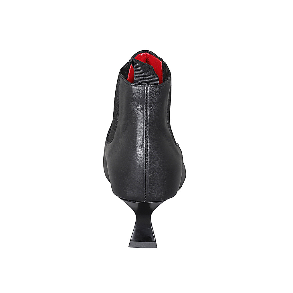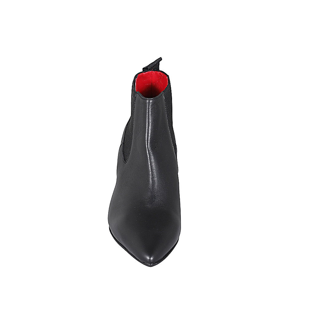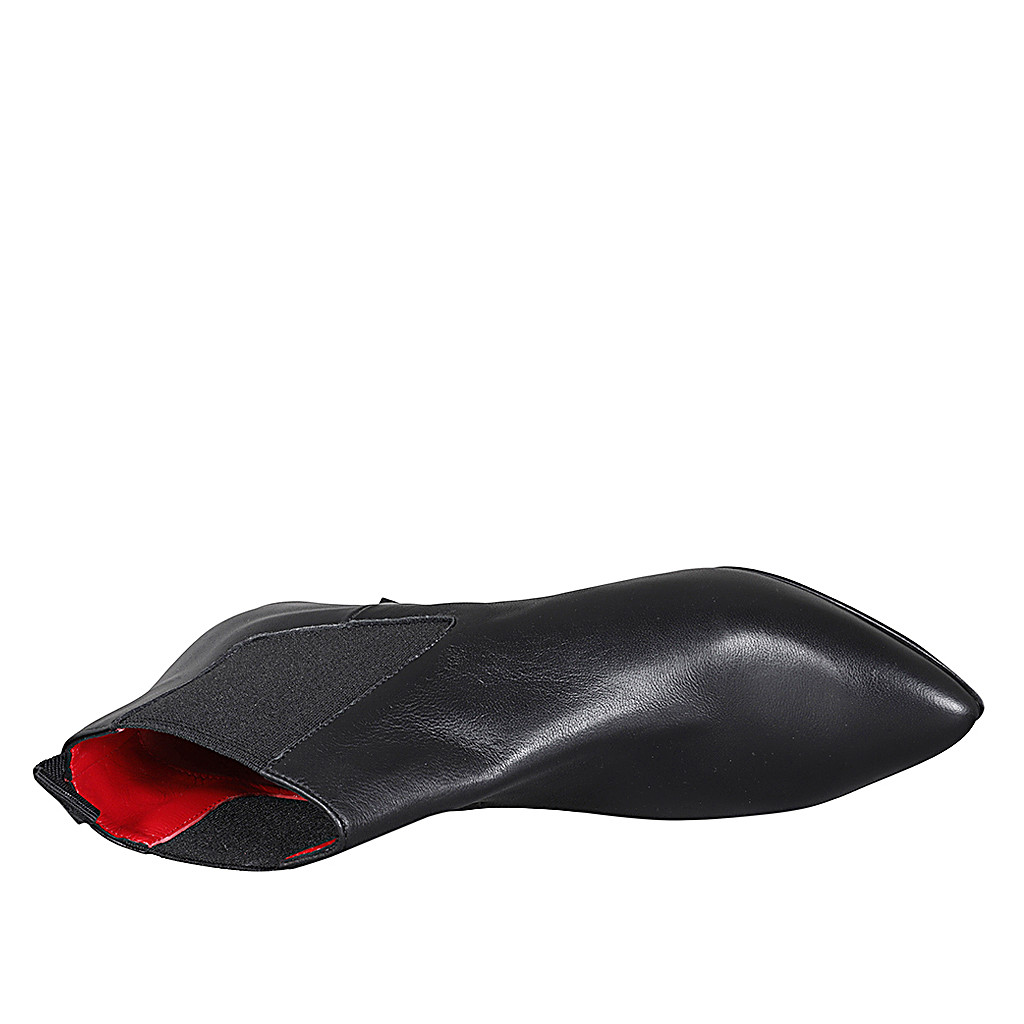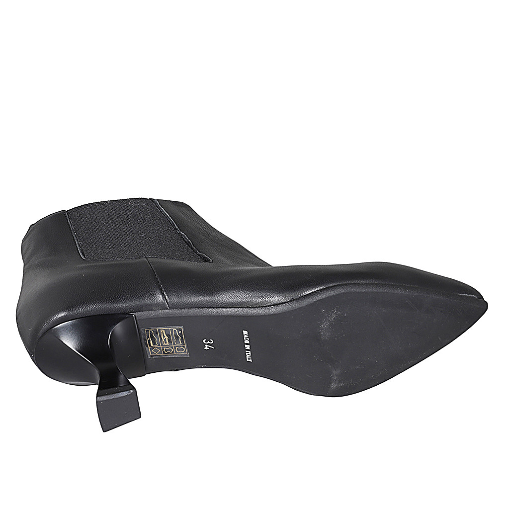 Spitze Damenstiefelette mit Gummibändern aus schwarzem Leder mit Absatz 6