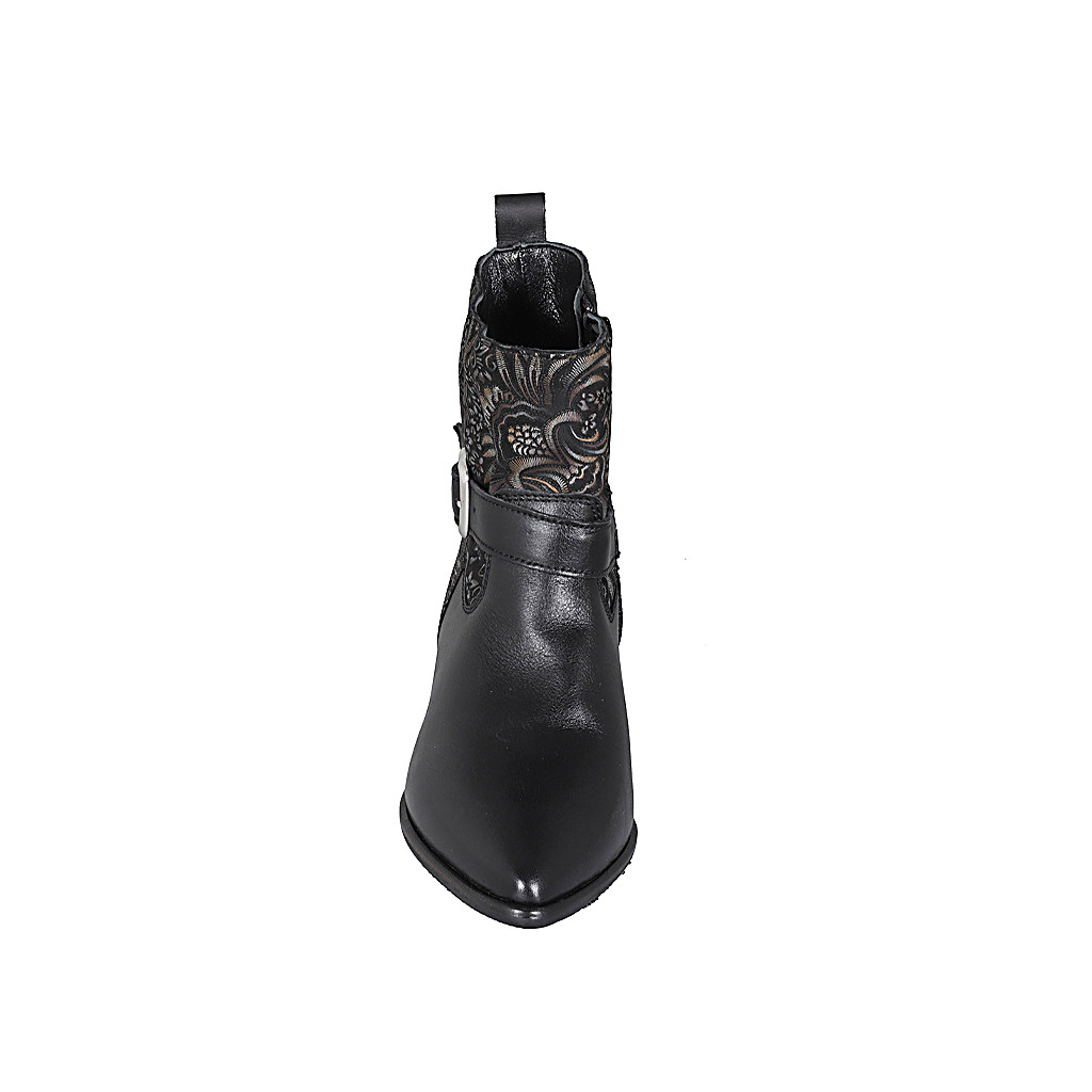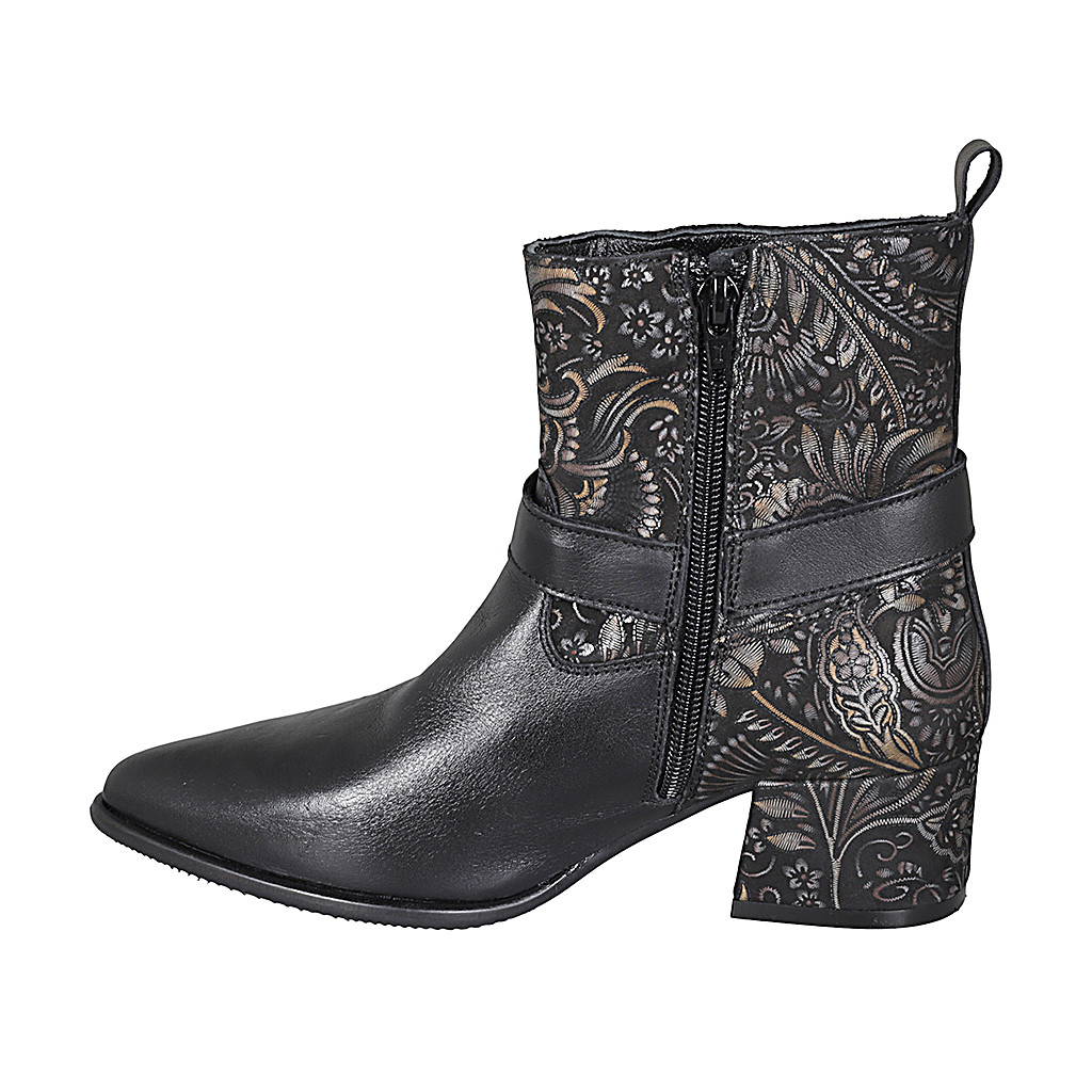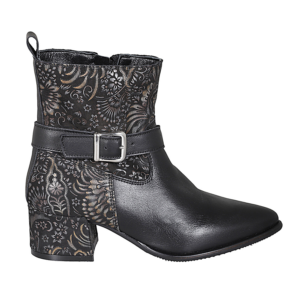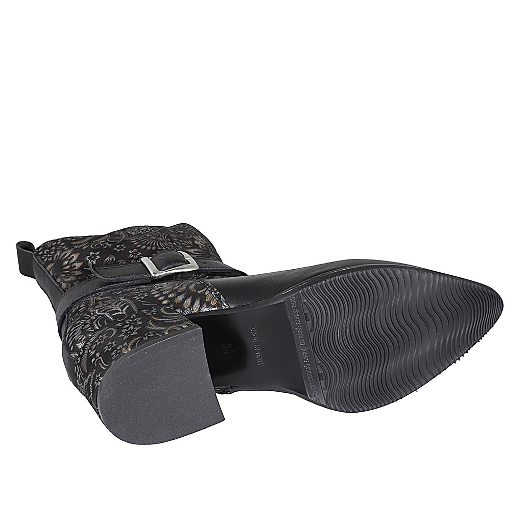Damensandale aus rosalaminiertem bedrucktem Leder mit Riem, Plateau und Keilabsatz 9