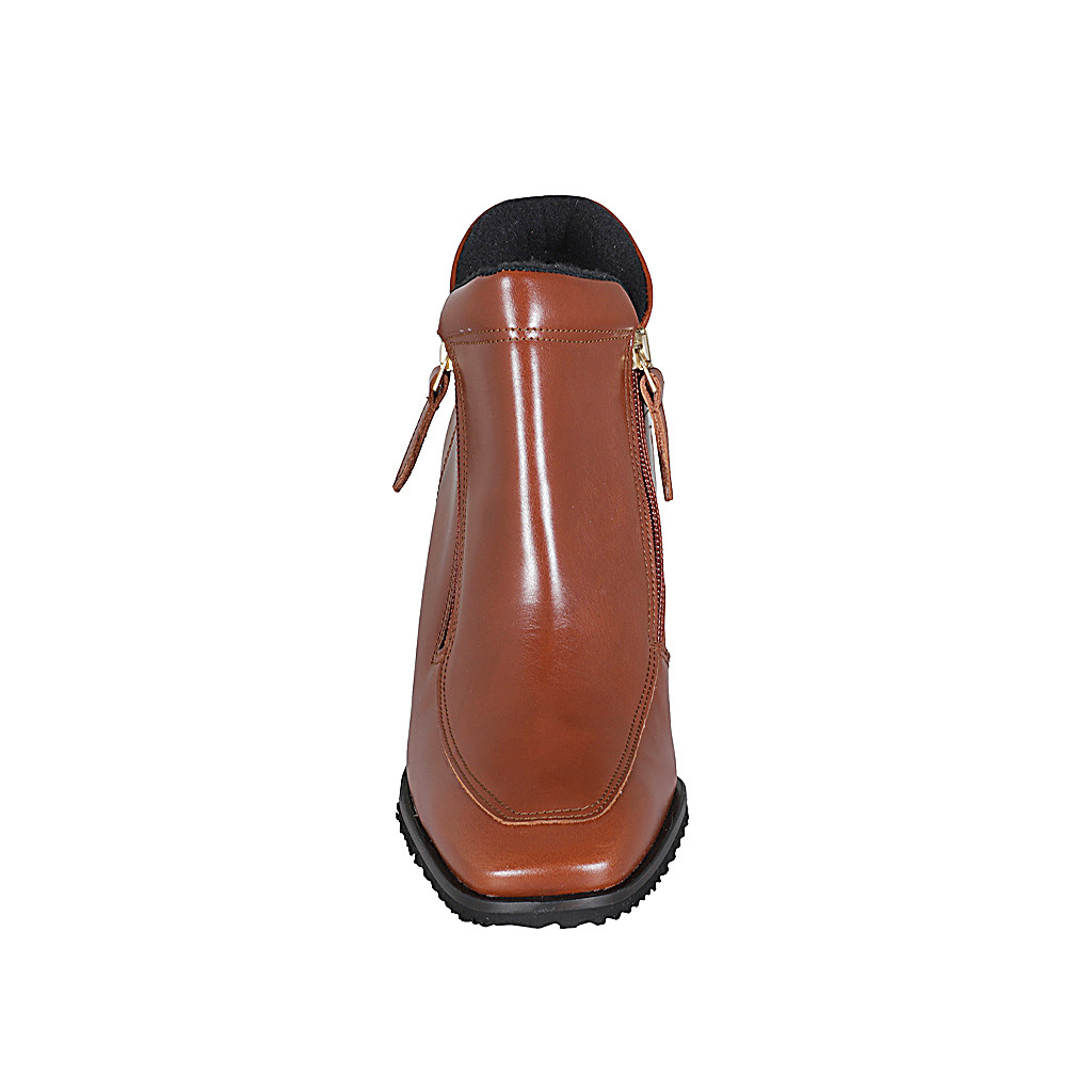 Damenstiefelette aus cognacbraunem Leder mit Reißverschlüssen Keilabsatz 6