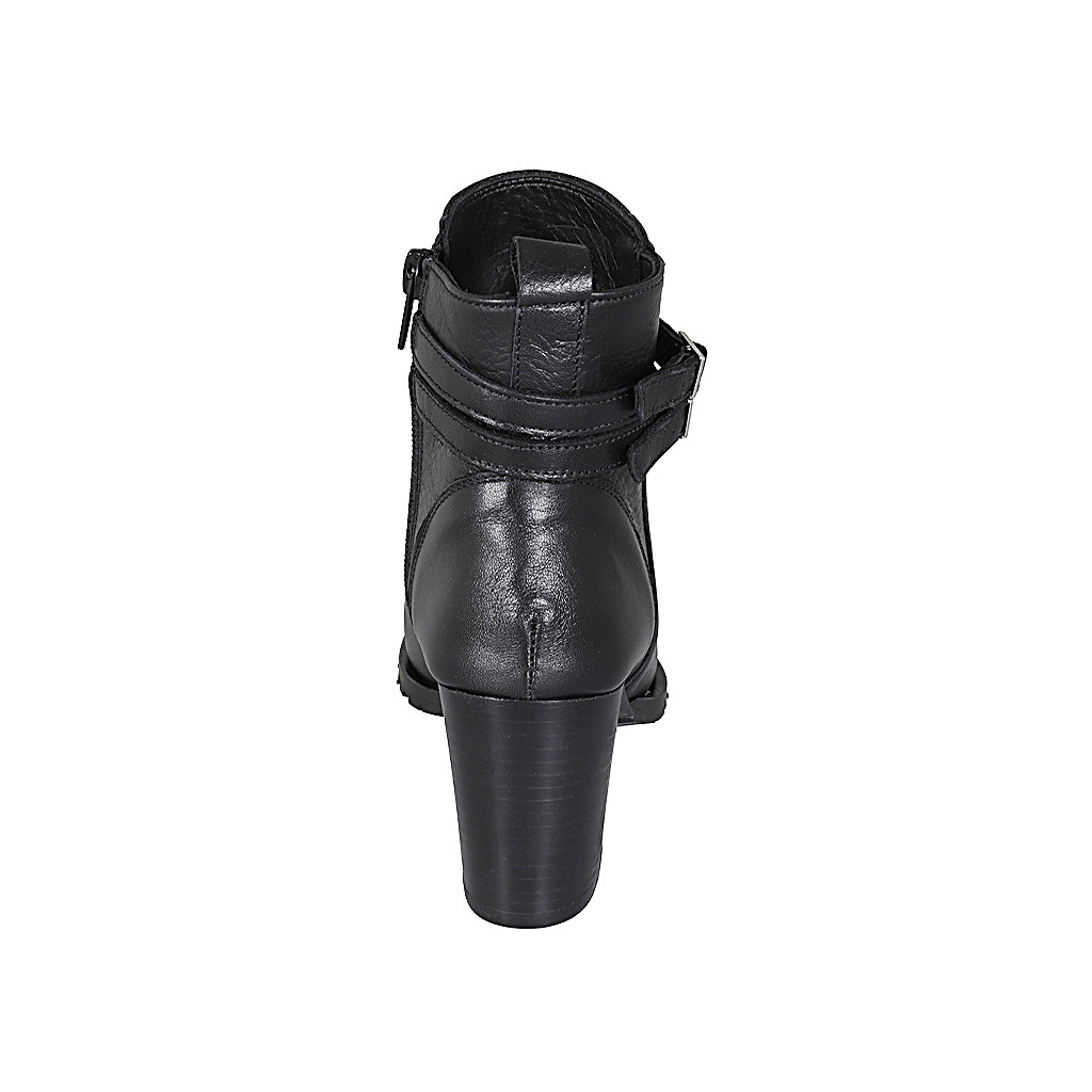 Damenstiefelette mit Reißverschluss und Schnallen aus schwarzem Leder Absatz 7