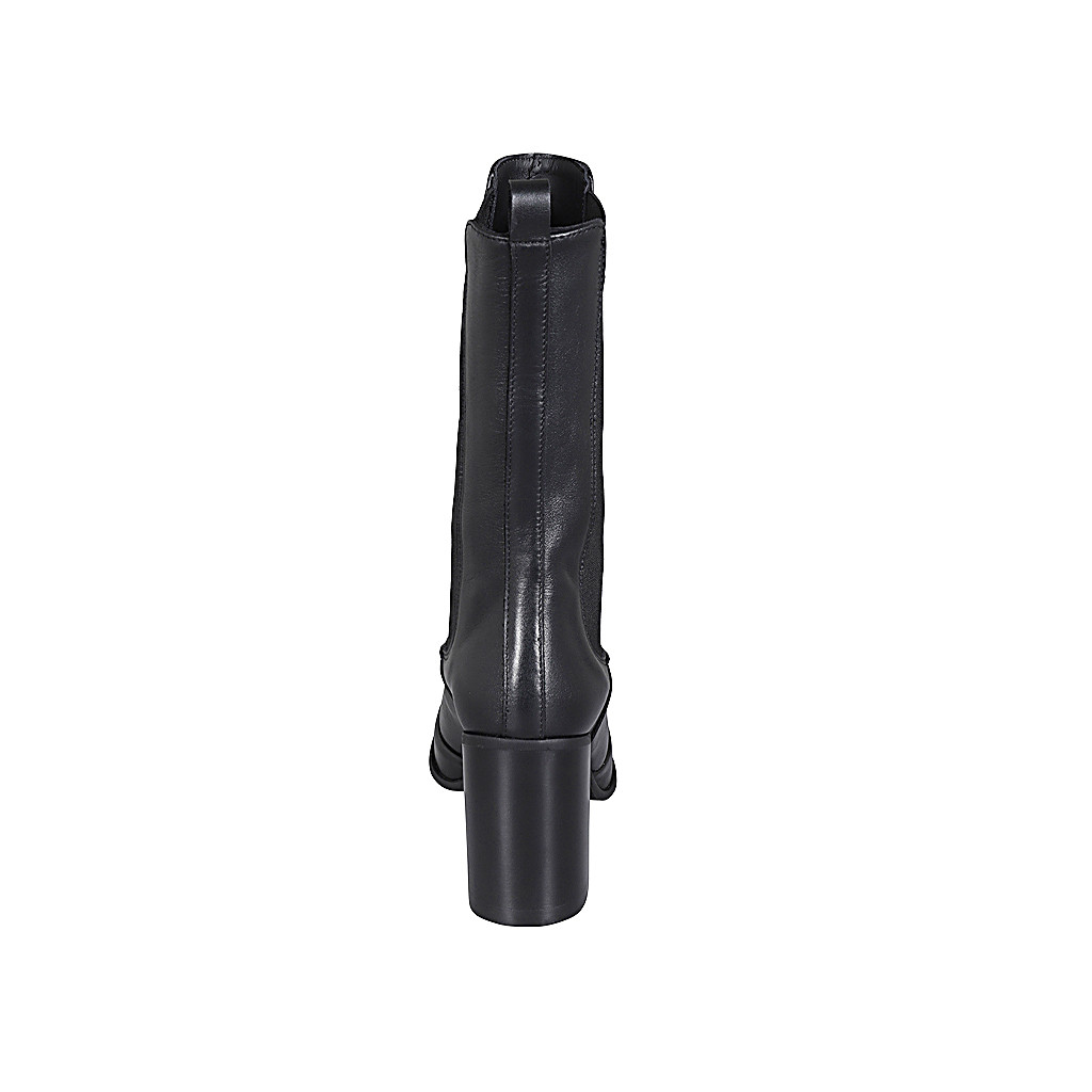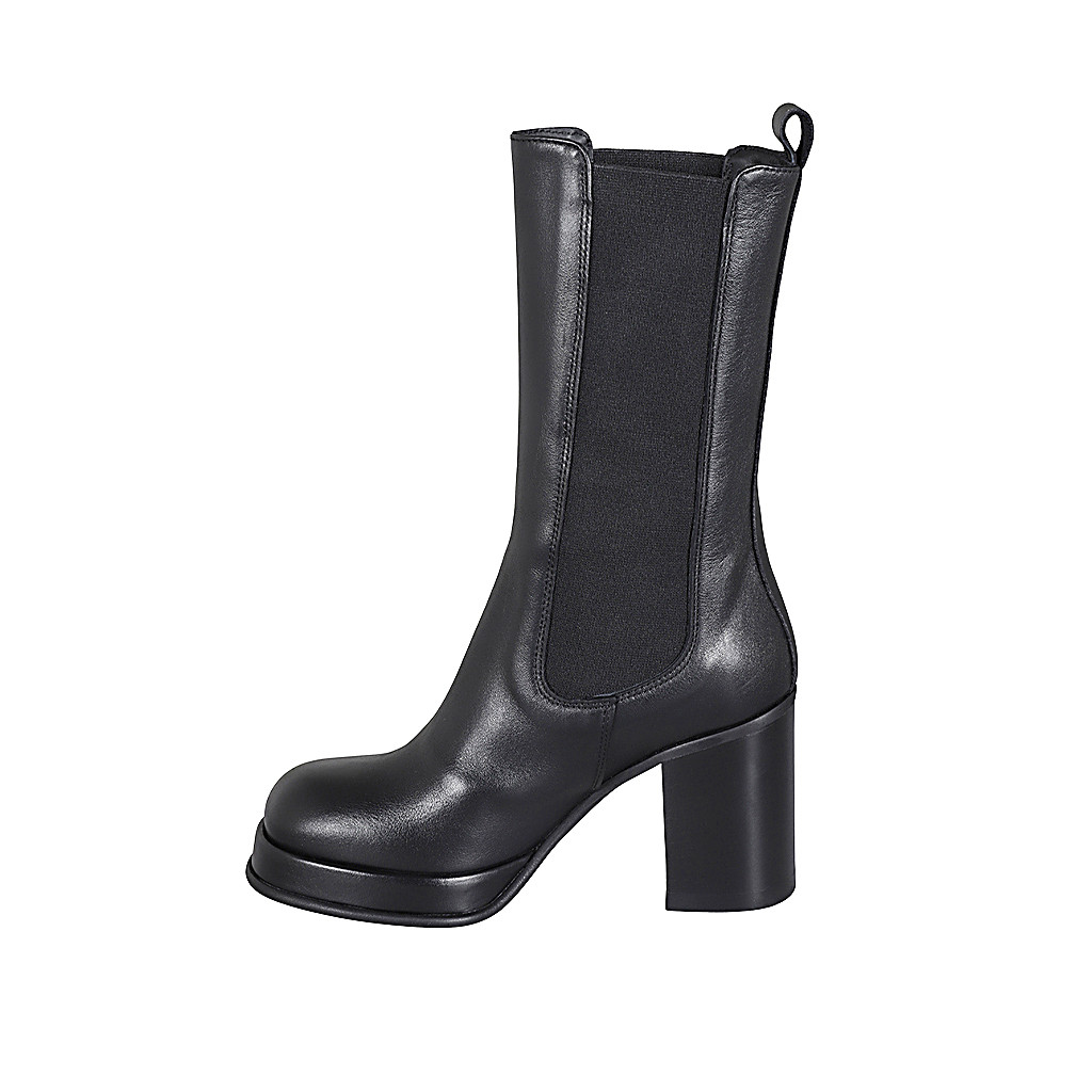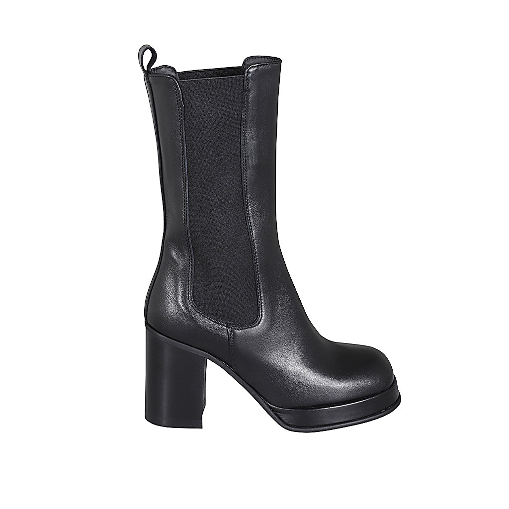 Hohe Damenstiefelette aus schwarzem Leder mit Gummibändern und Plateau Absatz 8