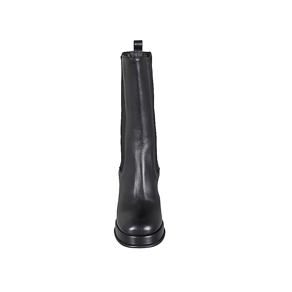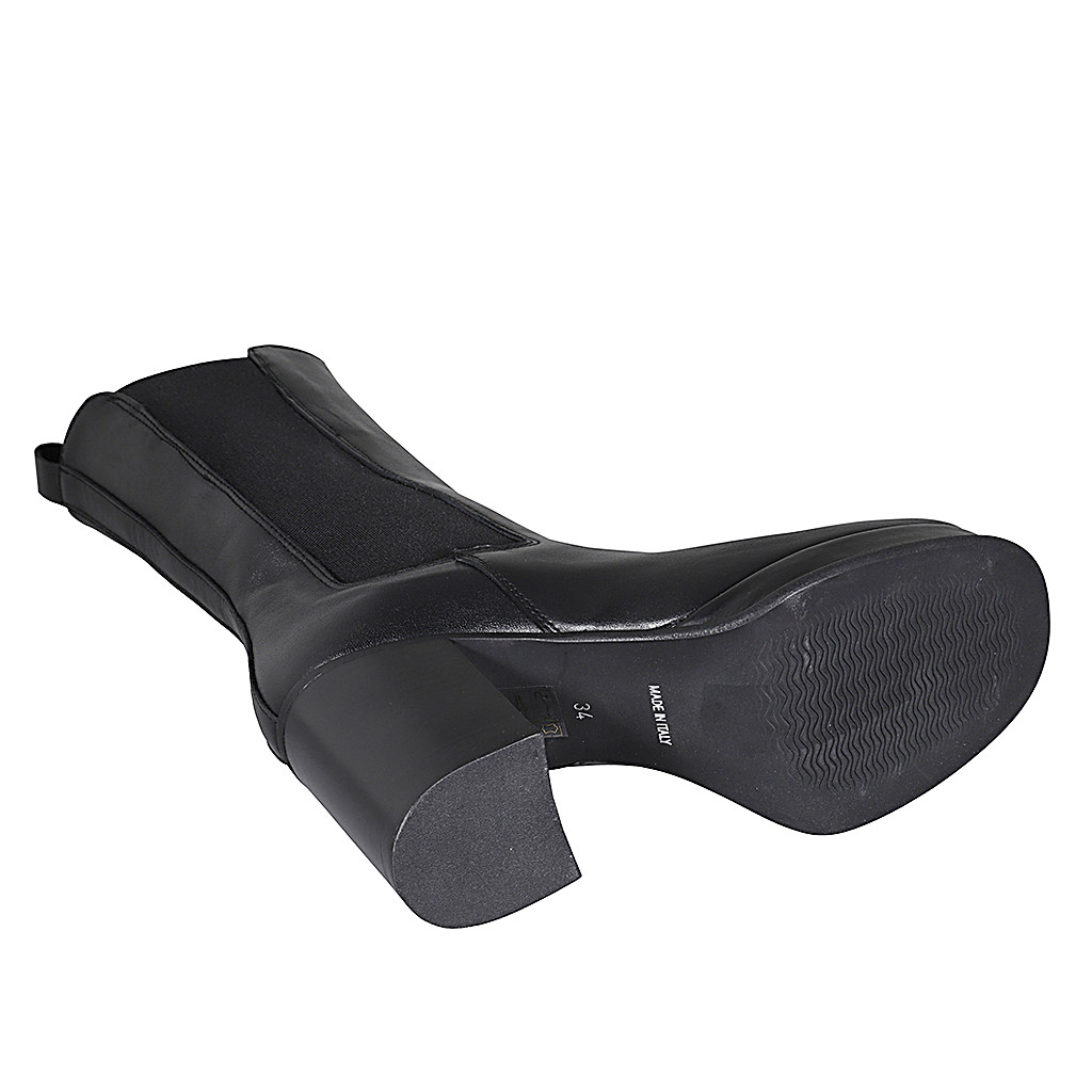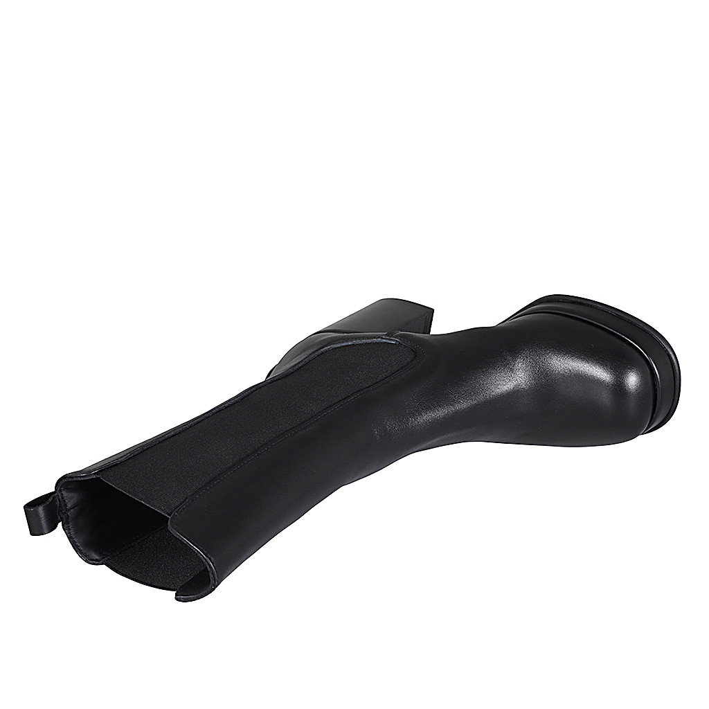 Hohe Damenstiefelette aus schwarzem Leder mit Gummibändern und Plateau Absatz 8