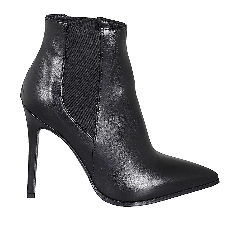 Spitze Damenstiefelette mit Gummibändern aus schwarzem Leder mit Absatz 10