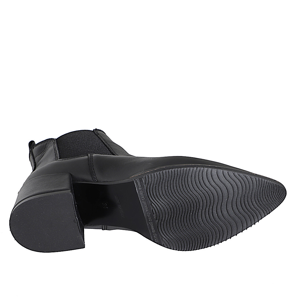 Damenstiefelette mit spitzer Spitze und Gummibändern aus schwarzem Leder Absatz 5