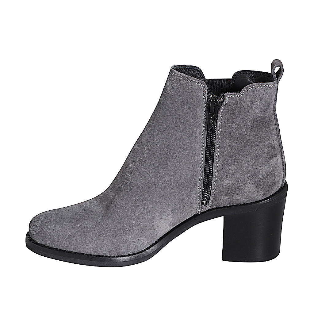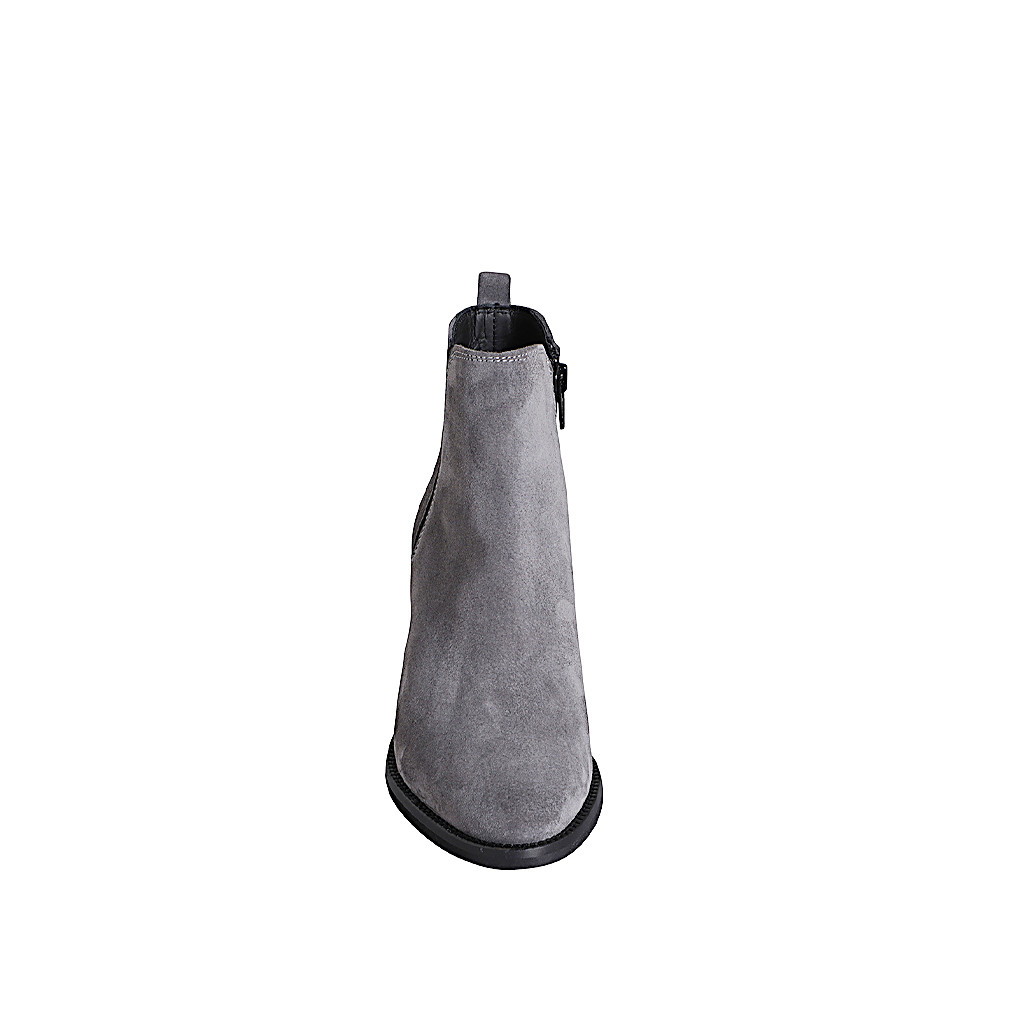 Damenstiefelette mit Reißverschluss und Gummiband aus grauem Wildleder Absatz 6
