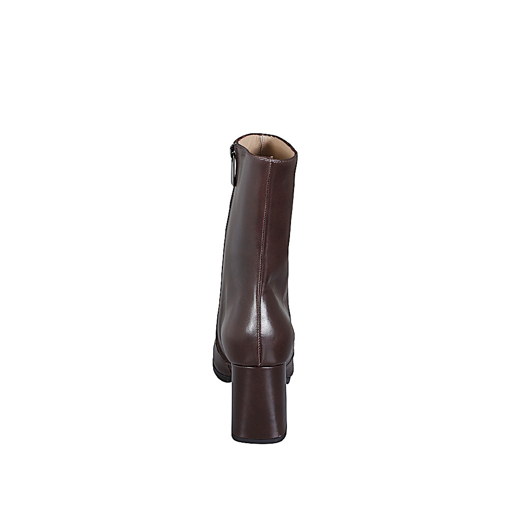 Hohe Damenstiefelette mit Reiβverschlsss aus dunkelbraunem Leder Absatz 7