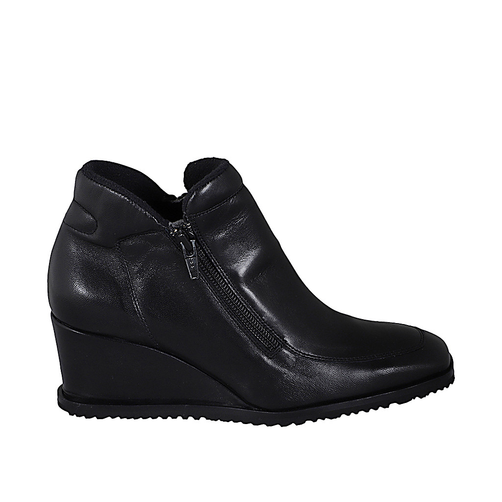 Damenstiefelette aus schwarzem Leder mit Reißverschlüssen Keilabsatz 6