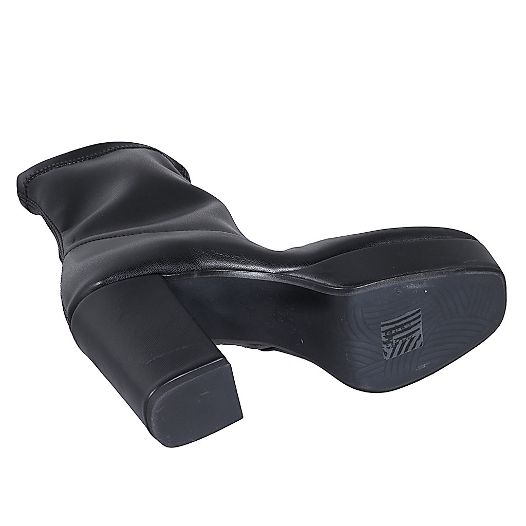 Damenstiefelette mit Reißverschluss und Plateau aus schwarzem elastischem Material und Leder Absatz 10