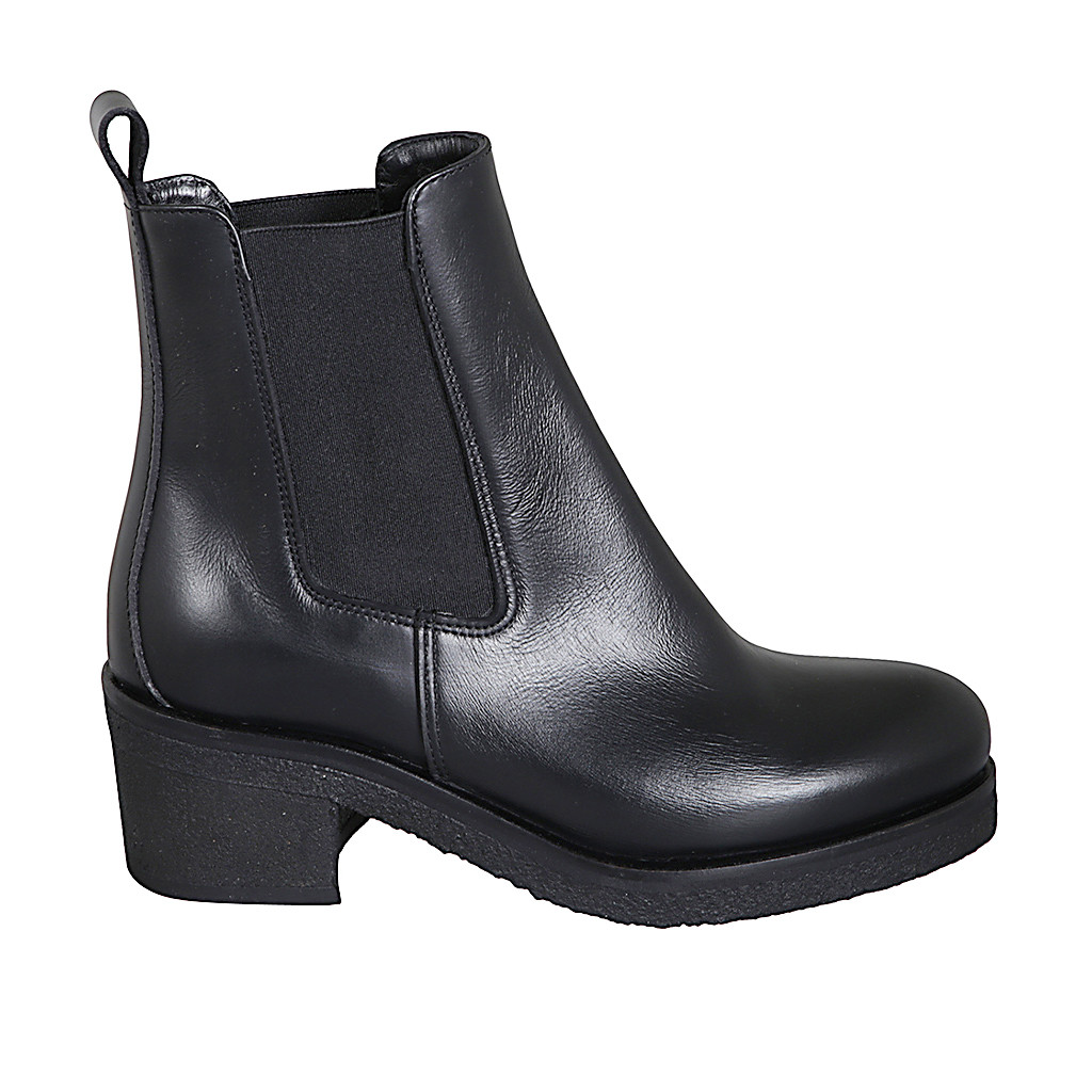 Damenstiefelette aus schwarzem Leder mit Gummibändern mit Absatz 6