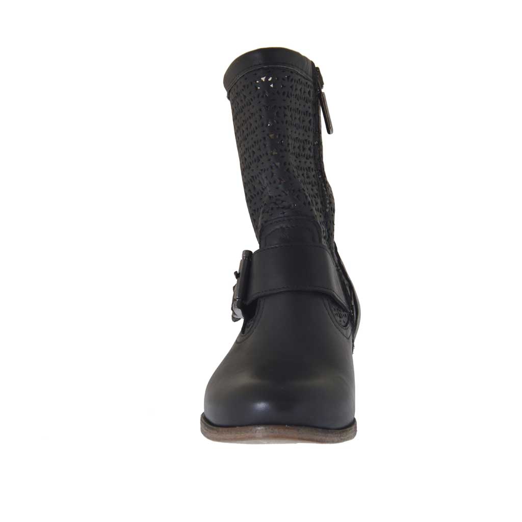 Damenstiefelette mit Schnalle aus schwarzem perforiertem Leder