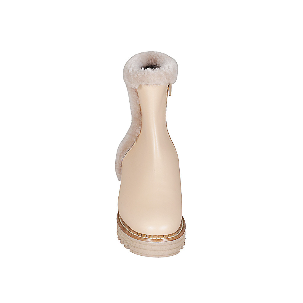 Woman's ankle boot in nude leather with zipper and fur lining heel 4