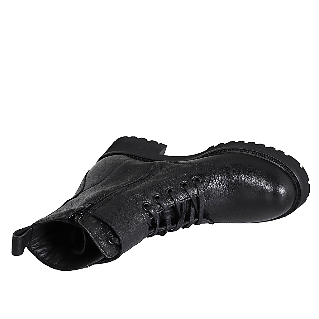 Woman's laced ankle-high boot with double buckles and inner zipper in black leather heel 5 - Available sizes:  32, 33, 43, 44, 46