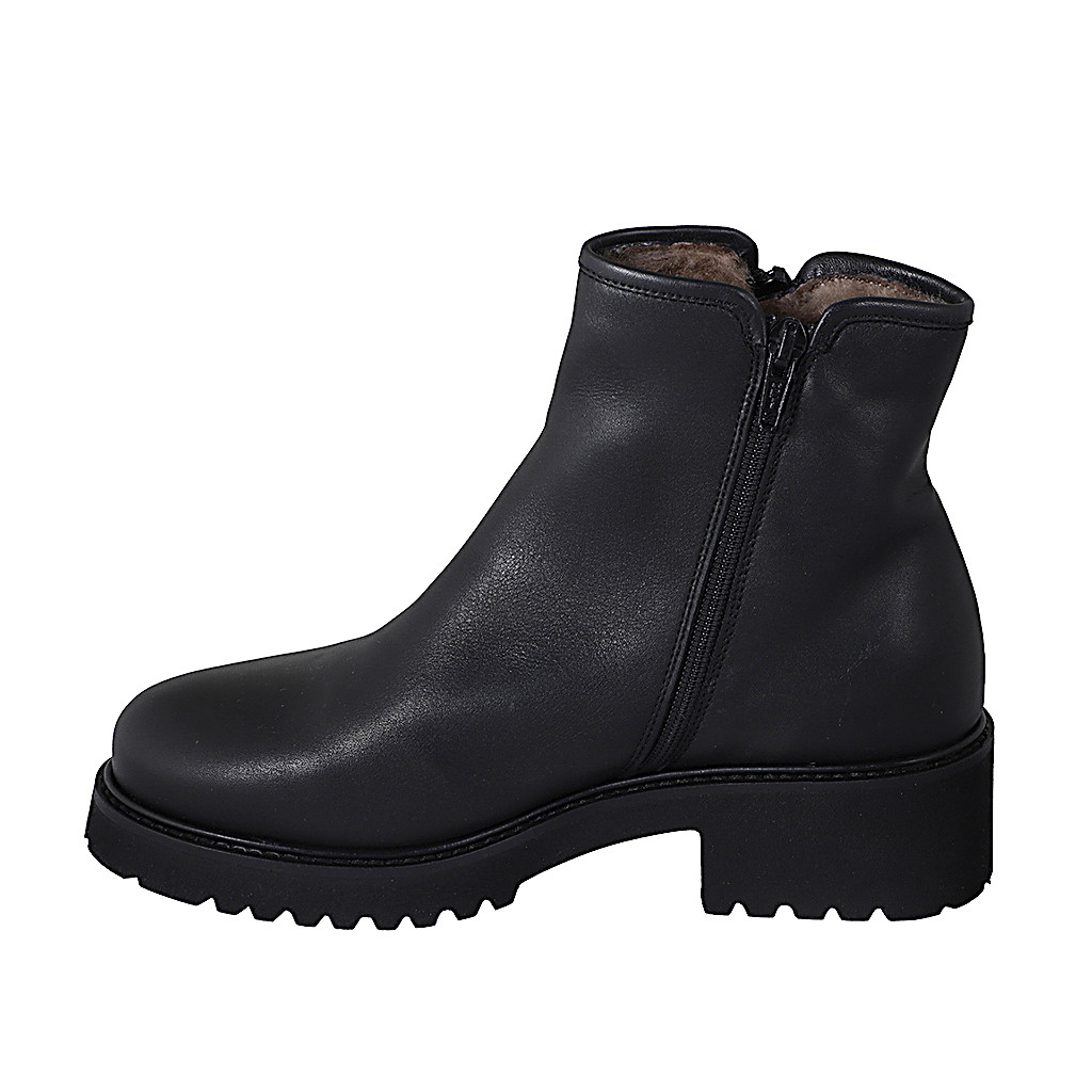 Woman's ankle boot in black leather with zippers and fur lining heel 4 - Available sizes:  43, 44, 45, 46