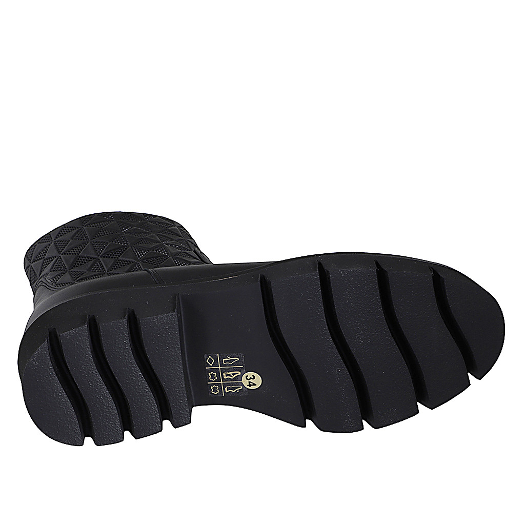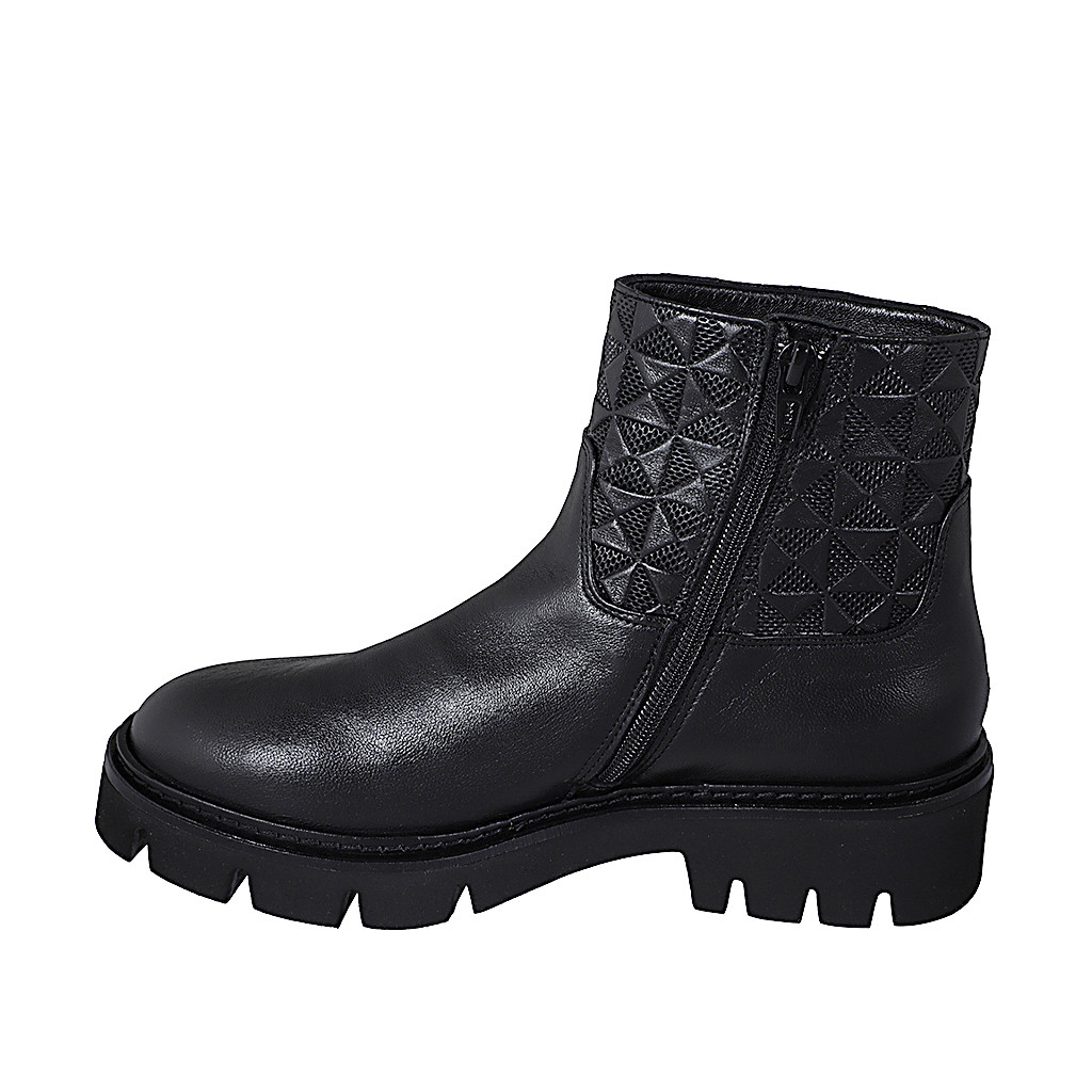 Woman's ankle boot in black leather with zipper and geometrical pattern heel 4 - Available sizes:  32, 33, 34, 35, 42, 43, 44, 45