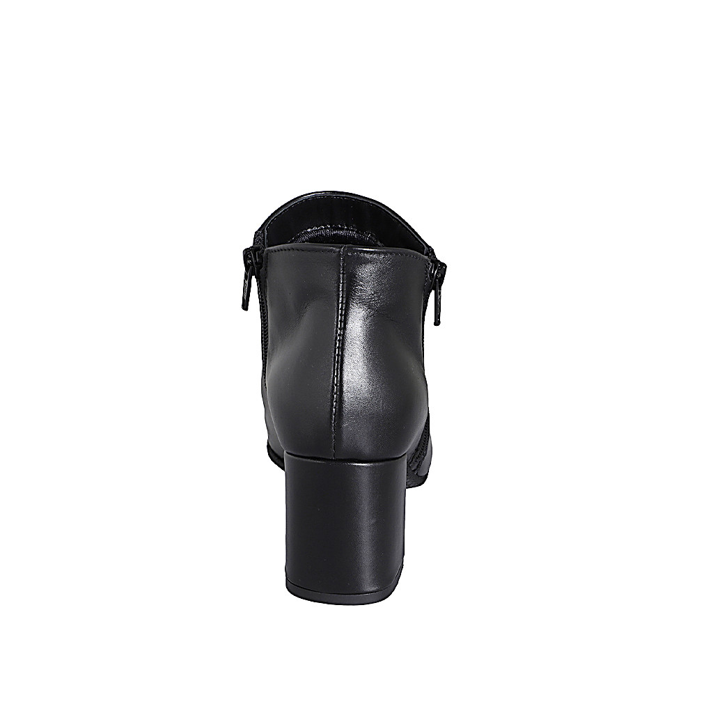 Woman's ankle boot with buckle, zipper and platform in black leather heel 8