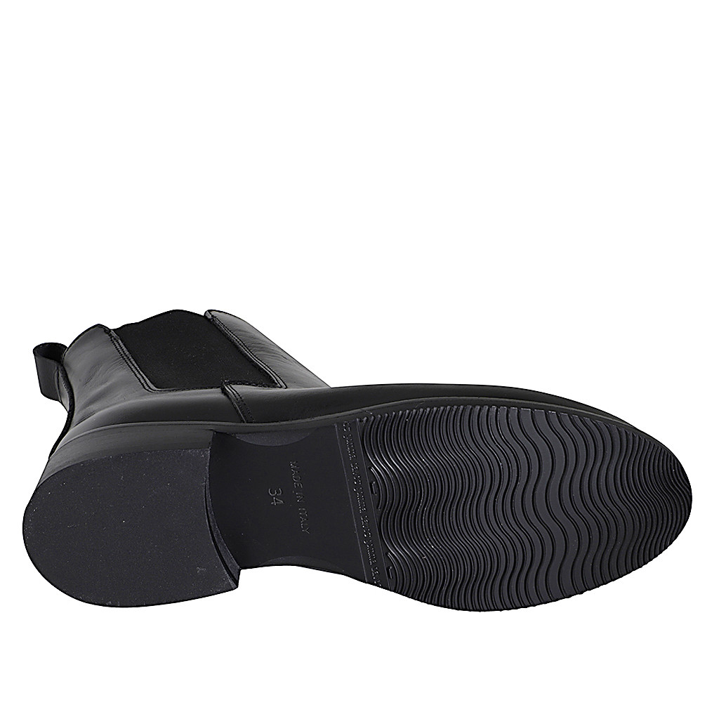Woman's ankle boot in black leather with elastic bands with heel 3 - Available sizes:  32