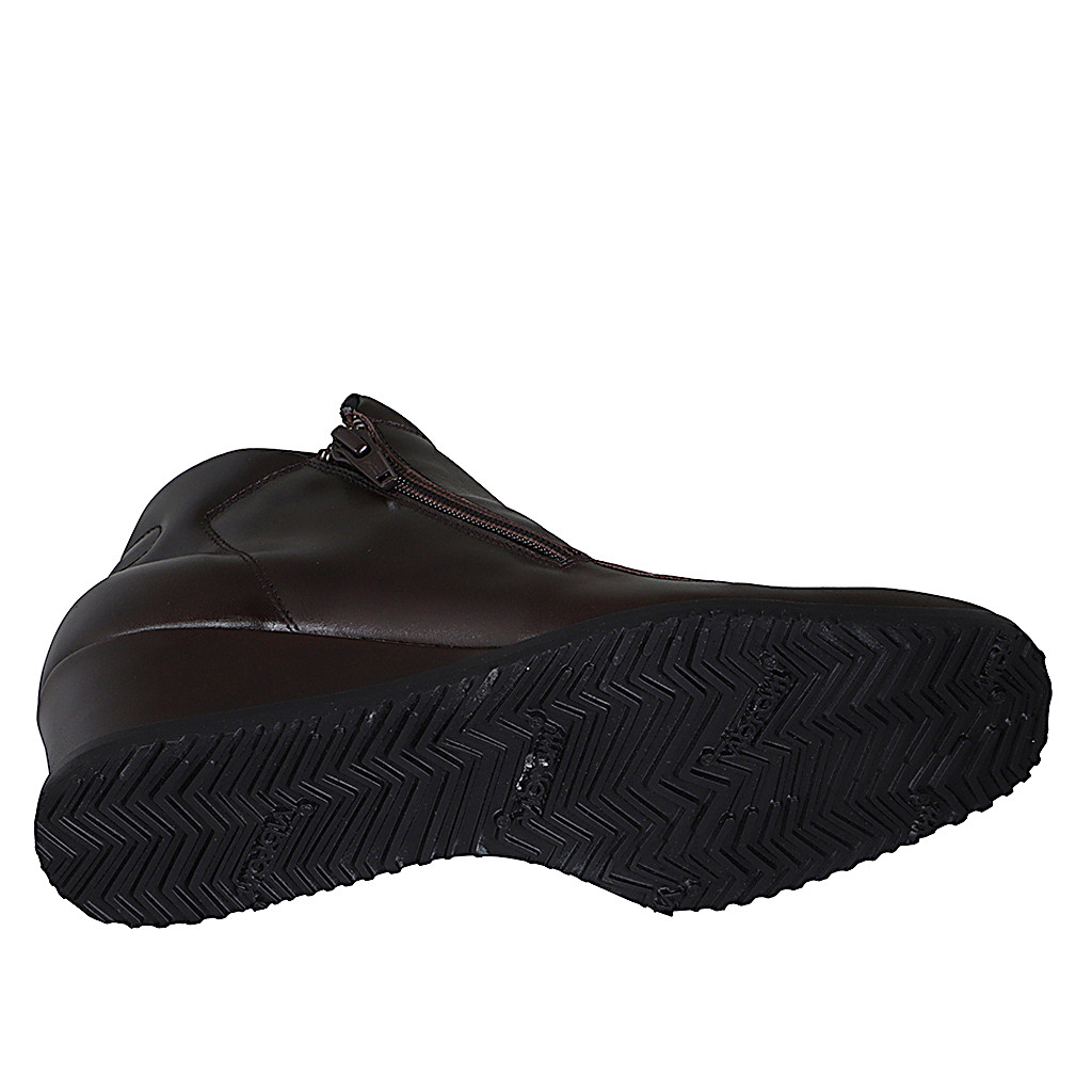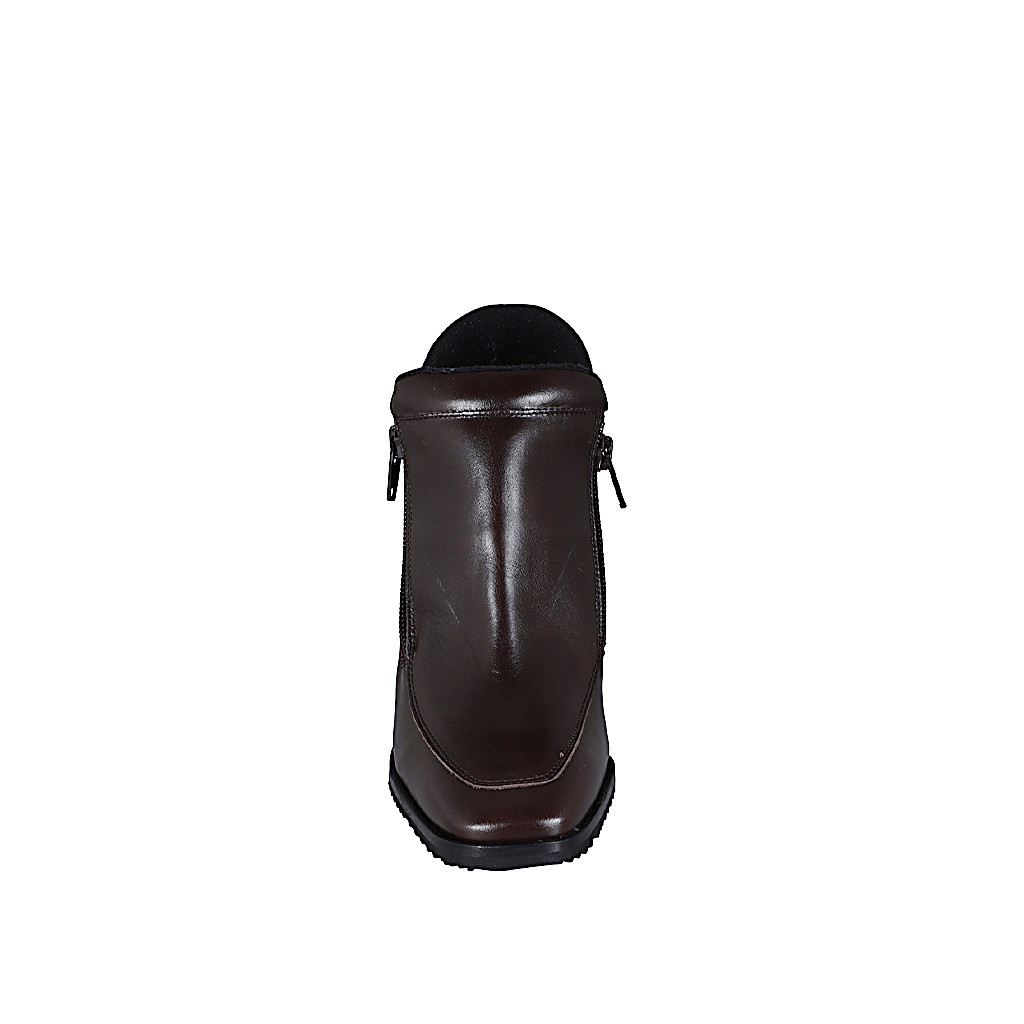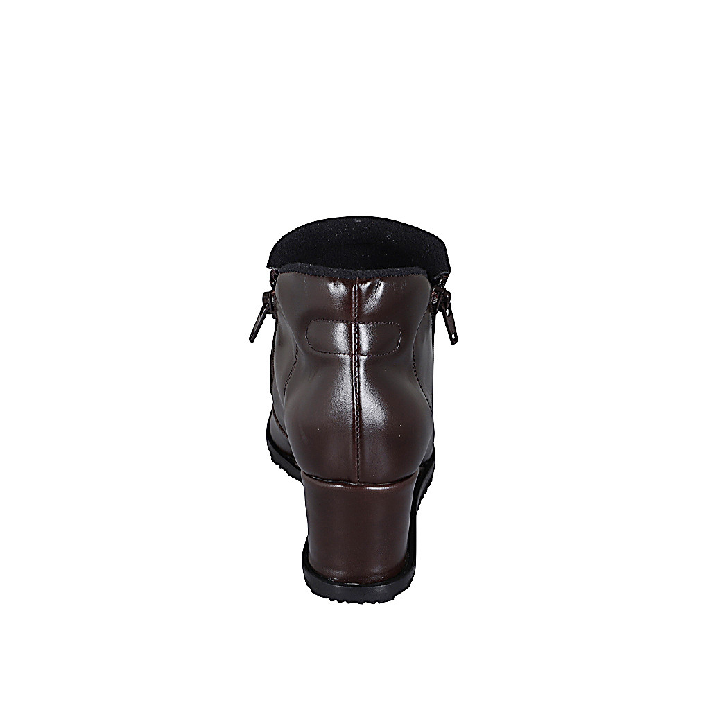 Woman's ankle boot in dark brown leather with zippers wedge heel 6