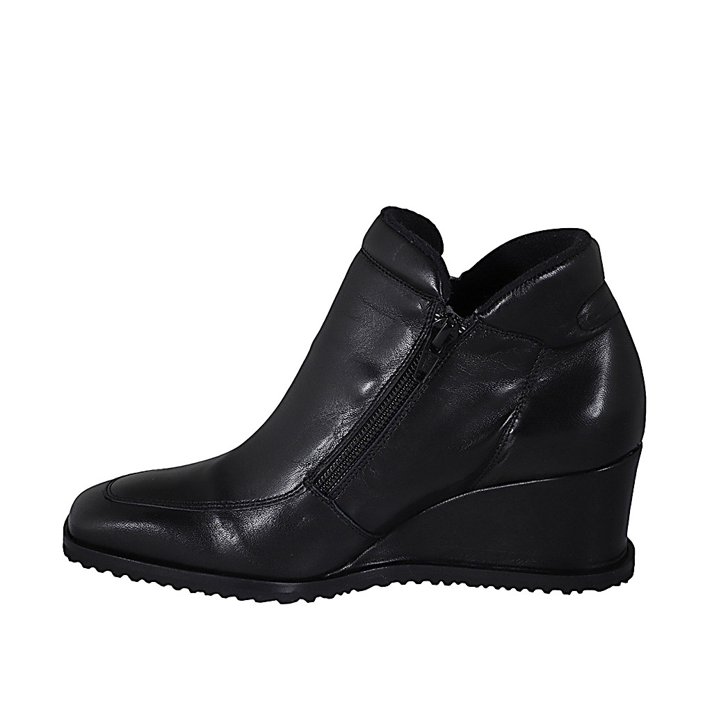 Woman's highfronted shoe with T-strap in black leather heel 3