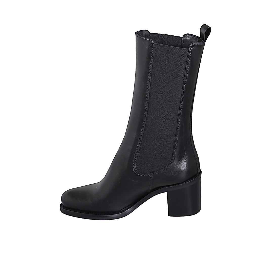 Woman's high ankle boot with rounded tip and elastic bands in black leather heel 6