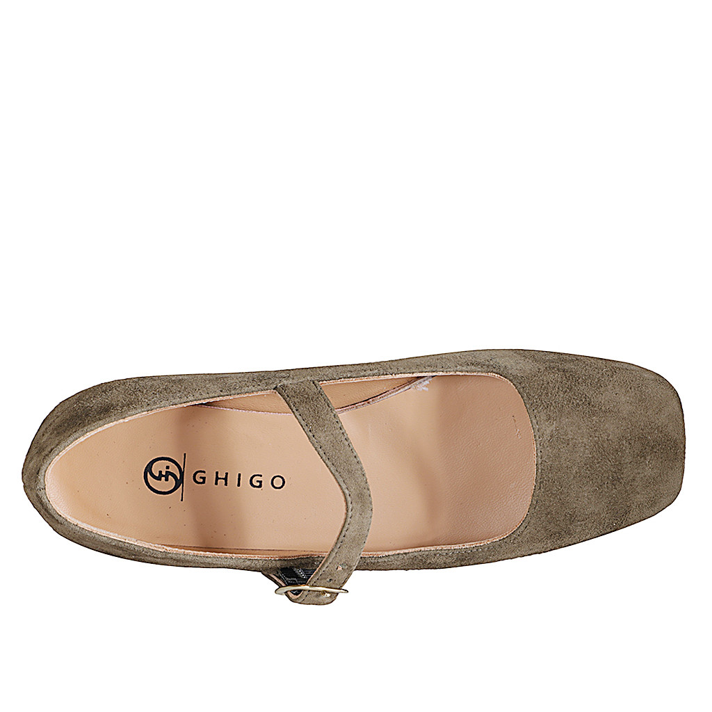 Woman's Mary Jane ballerina with strap and square toe in green suede heel 2 - Available sizes:  33, 35, 42, 43, 44, 46