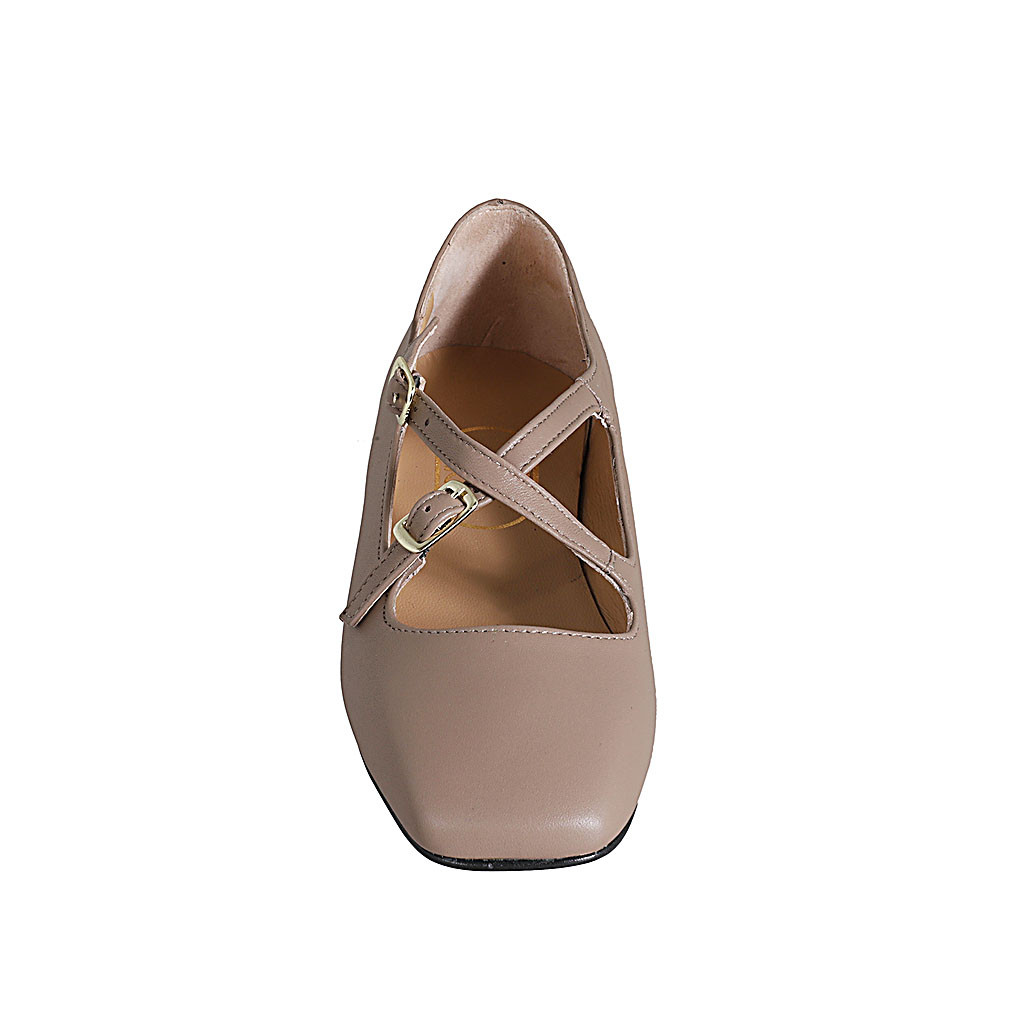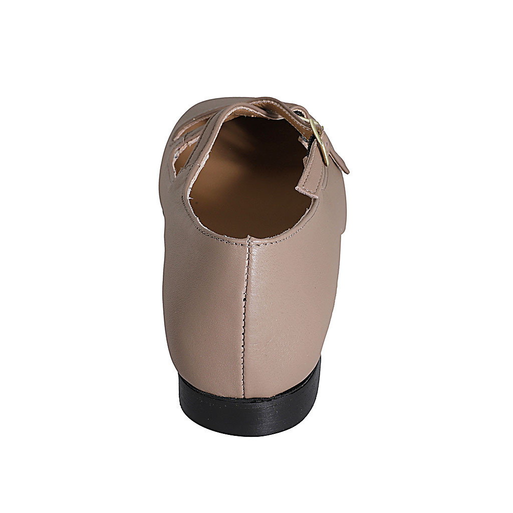 Woman's ankle boot with zipper and buckle in cognac brown suede heel 5