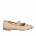Woman's Mary Jane flat with pointed tip and two straps in nude leather, heel 2