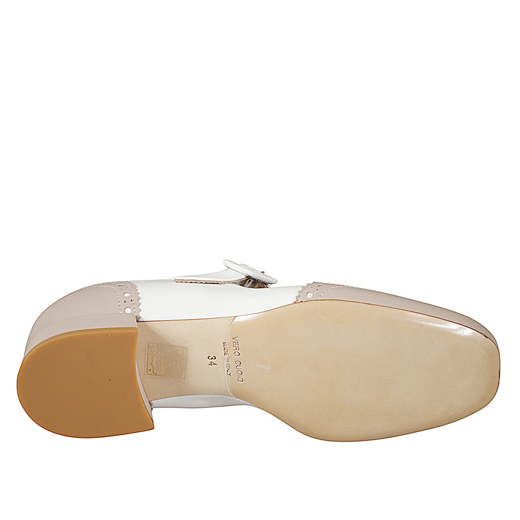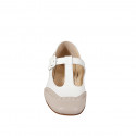 Woman's ballerina with T-strap, in white leather and captoe and heel in sand leather with heel 3