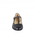 Woman's ballerina with T-strap in black leather heel 1