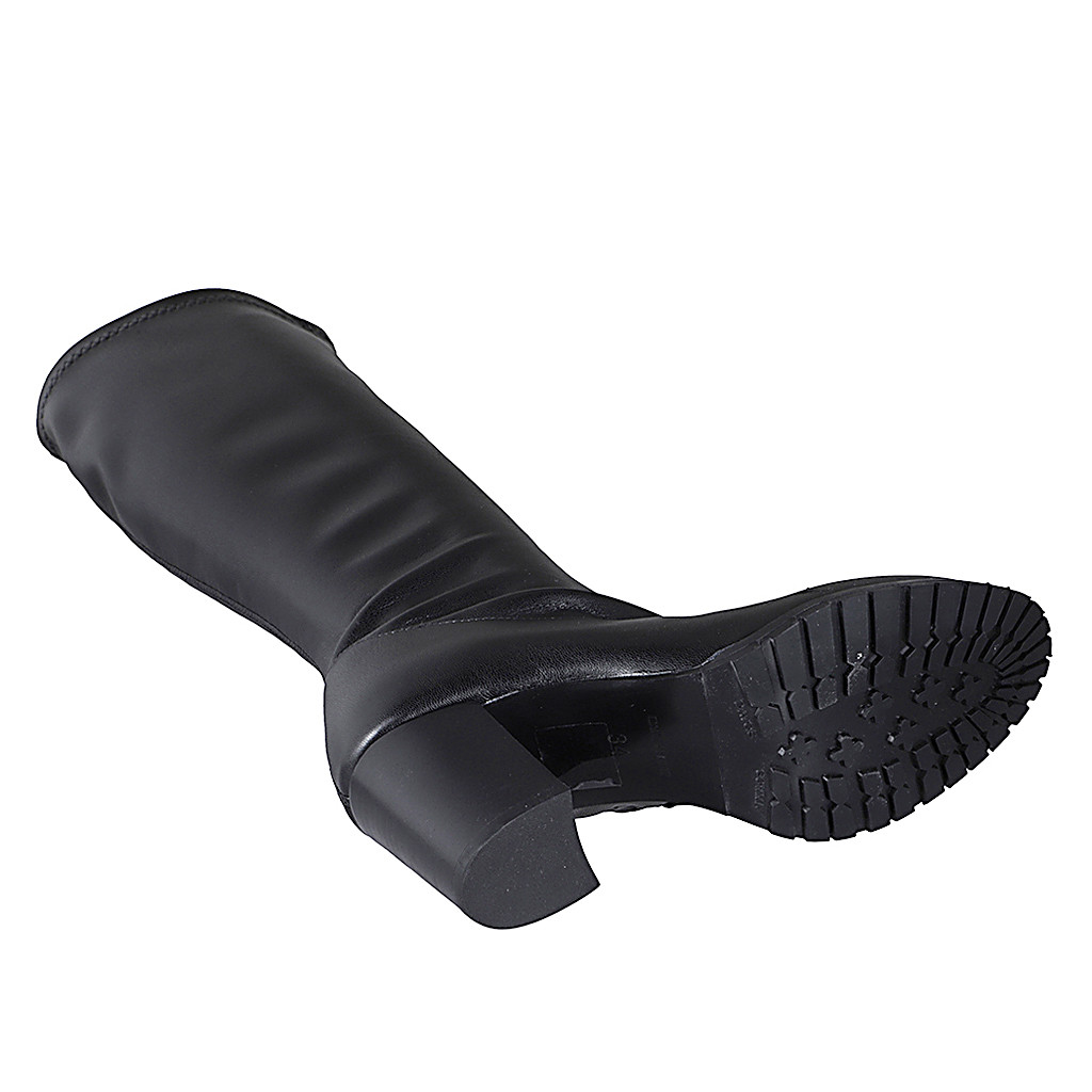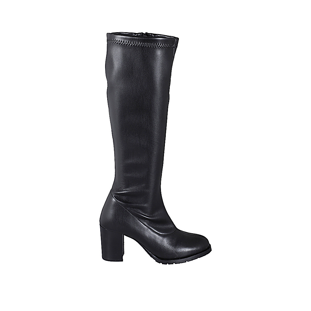 Woman's boot with zipper and rounded tip in white and gray printed leather heel 6