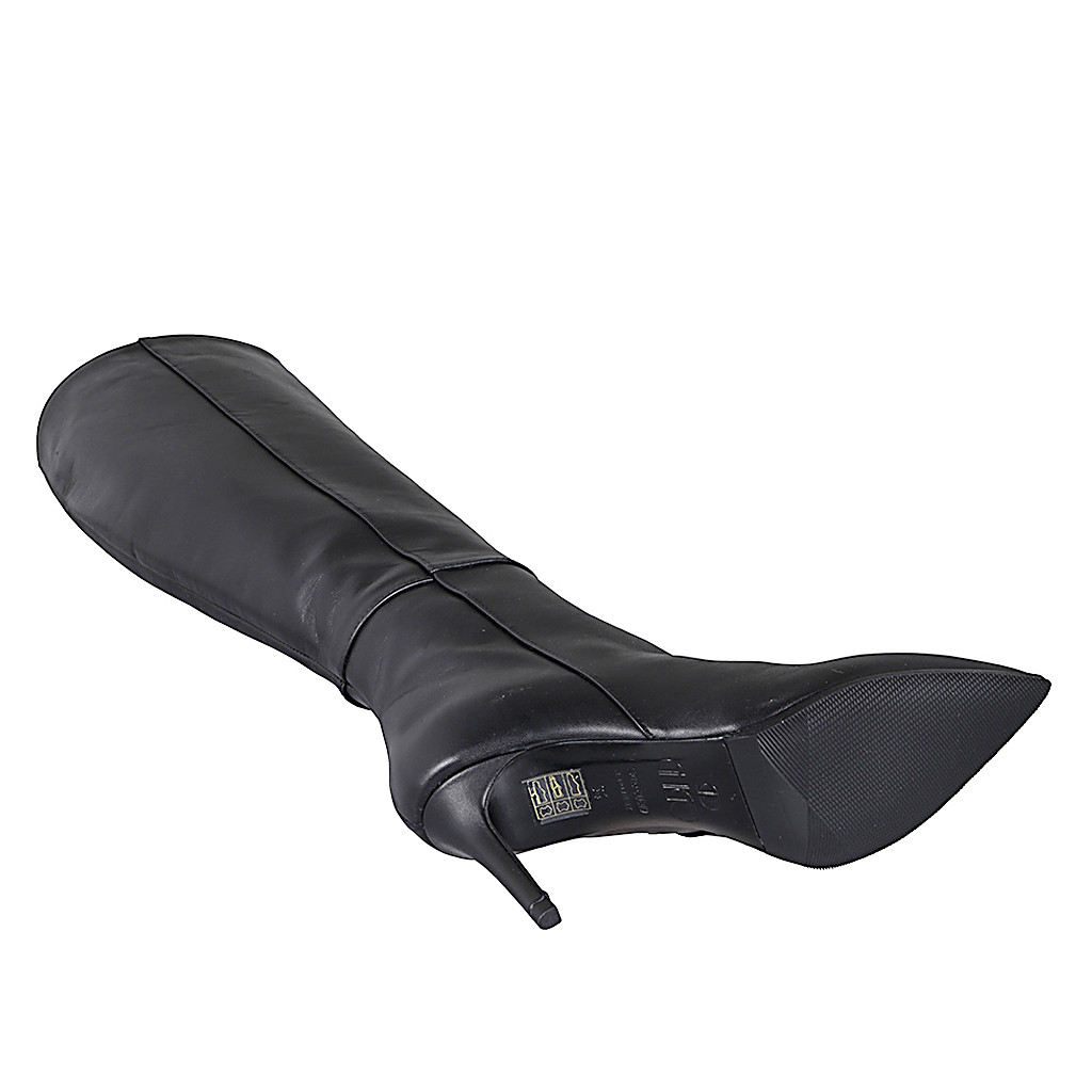 Woman's pointy boot in black leather with zipper and heel 7 - Available sizes:  35, 42, 43