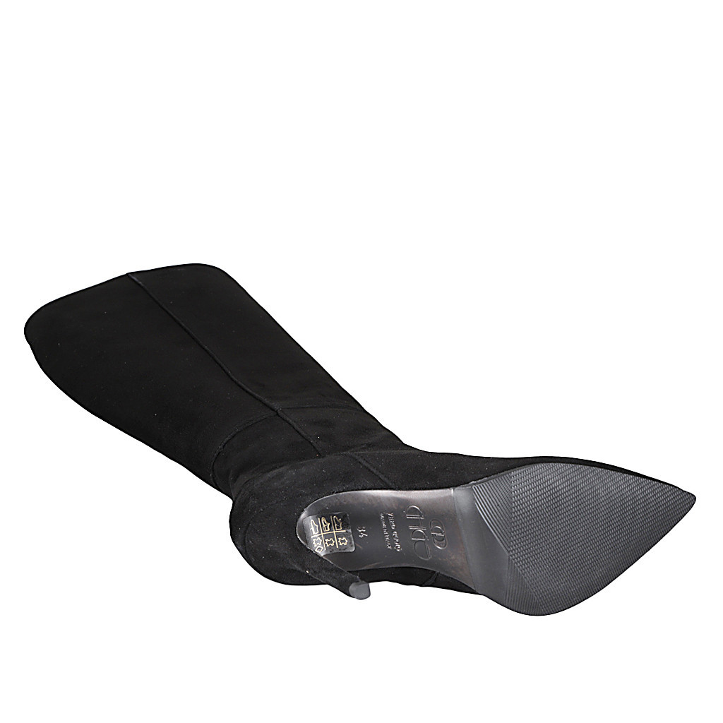 Woman's pointy boot in black suede with zipper heel 10 - Available sizes:  32, 33, 34, 42, 43